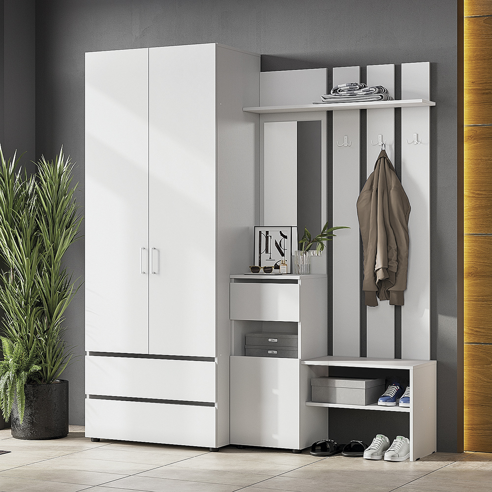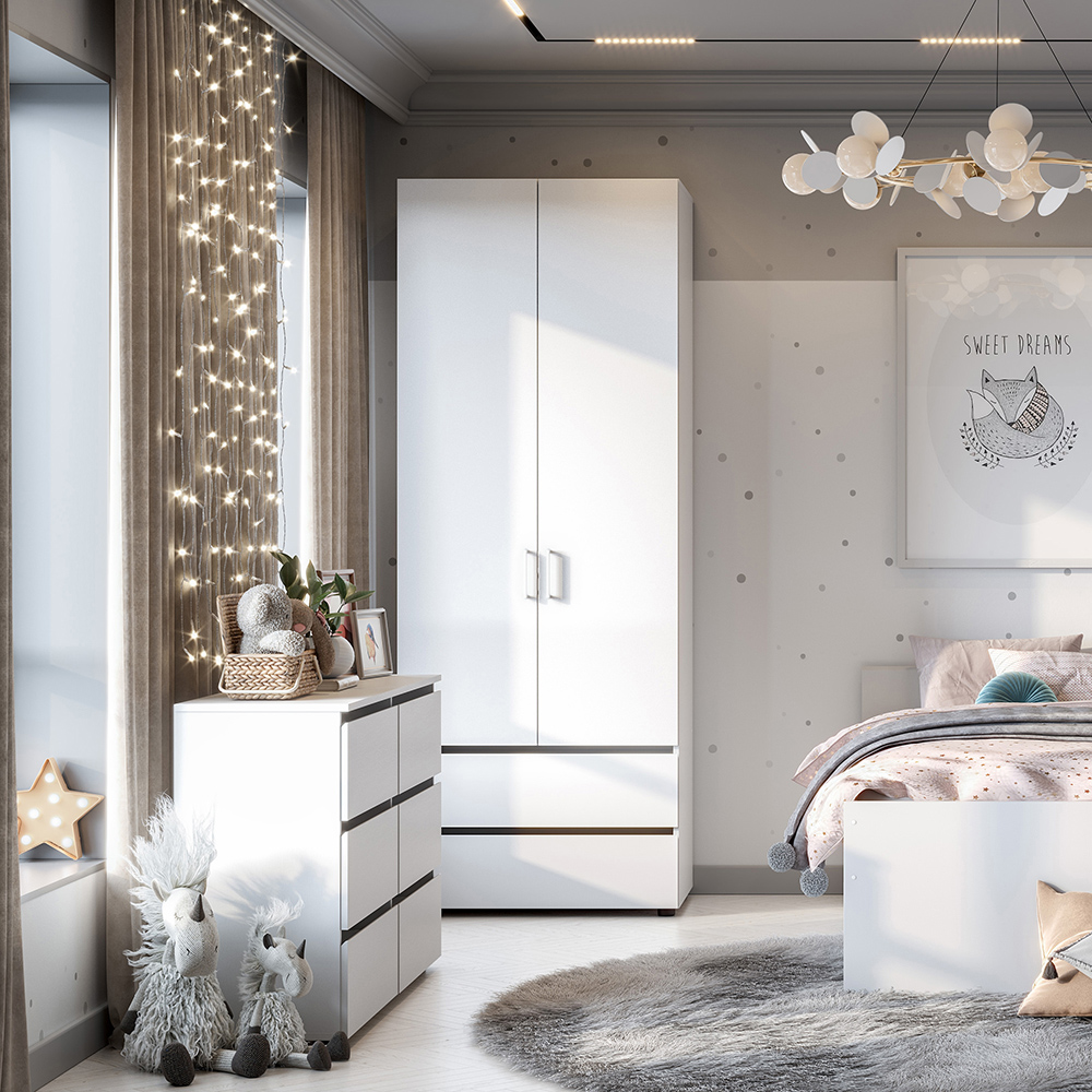 Шкаф Токио с распашными дверьми и двумя ящиками в цвете белый текстурный - это идеальный выбор для тех, кто ищет стильную и функциональную мебель для своего дома. За распашными дверцами скрыта полка и штанга для одежды. Шкаф имеет два выдвижных вместительных ящика для хранения необходимых вещей. Благодаря универсальному цвету,шкаф подойдет для любого современного интерьера.