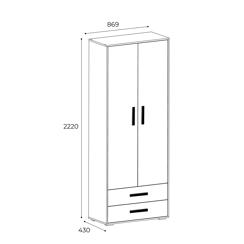 Двухдверный шкаф для одежды из коллекции Стич - универсальный вариант организации хранения в детской комнате мальчика. Благодаря разноплановому наполнению модуля всем вещам маленького героя хватит места. Продольные штанги пригодятся для одежды на плечиках, а комплект полок - для вещей в сложенном виде. Два вместительных ящика на шариковых направляющих Вы можете использовать для деликатных вещей, постельного белья и аксессуаров.