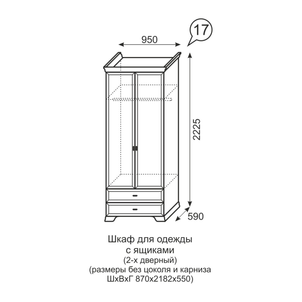 Венеция (17) шкаф для одежды 2-х дв с ящиками бодега