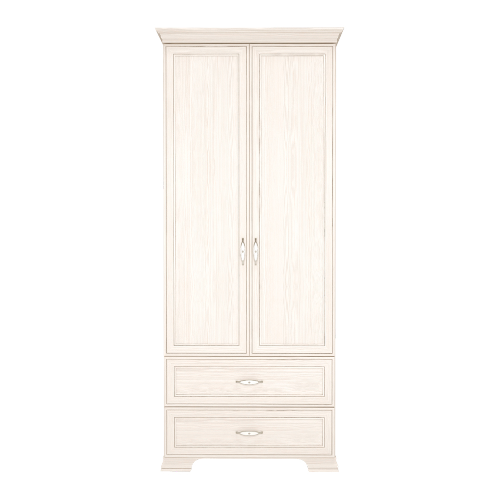 Организовать хранение одежды и белья станет легко благодаря компактному, но вместительному шкафу из коллекции Венеция. Имеет две распашные двери, внутри которых расположена полка-антресоль и продольная штанга. Вся Ваша деликатная одежда на вешалках будет храниться в порядке. 2 выдвижных ящика на шариковых направляющих пригодятся Вам для хранения вещей в сложенном виде, белья и аксессуаров.