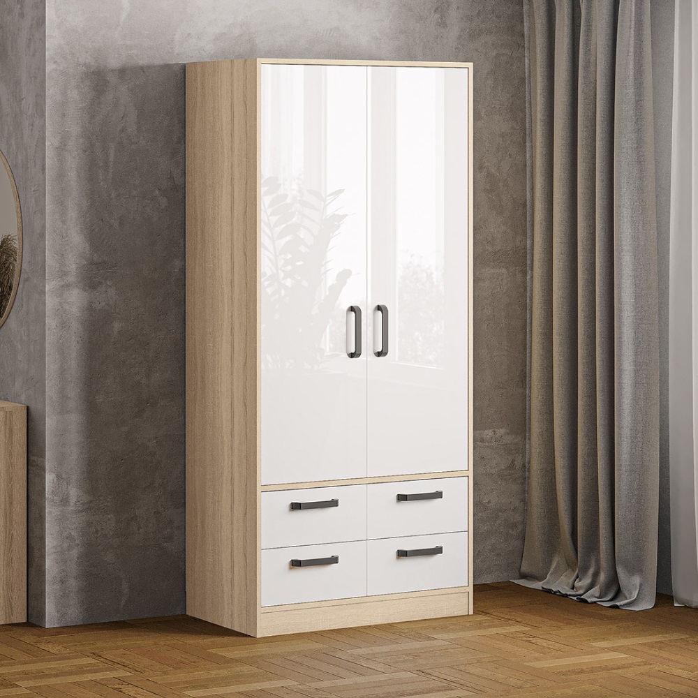 Распашной многофункциональный шкаф Лена в цвете сонома - это великолепное решение для любого интерьера, которое не только подчеркнет его стиль, но и обеспечит удобное хранение вещей. За распашными дверьми находится штанга для одежды. Шкаф имеет четыре выдвижных вместительных ящика для хранения необходимых вещей.