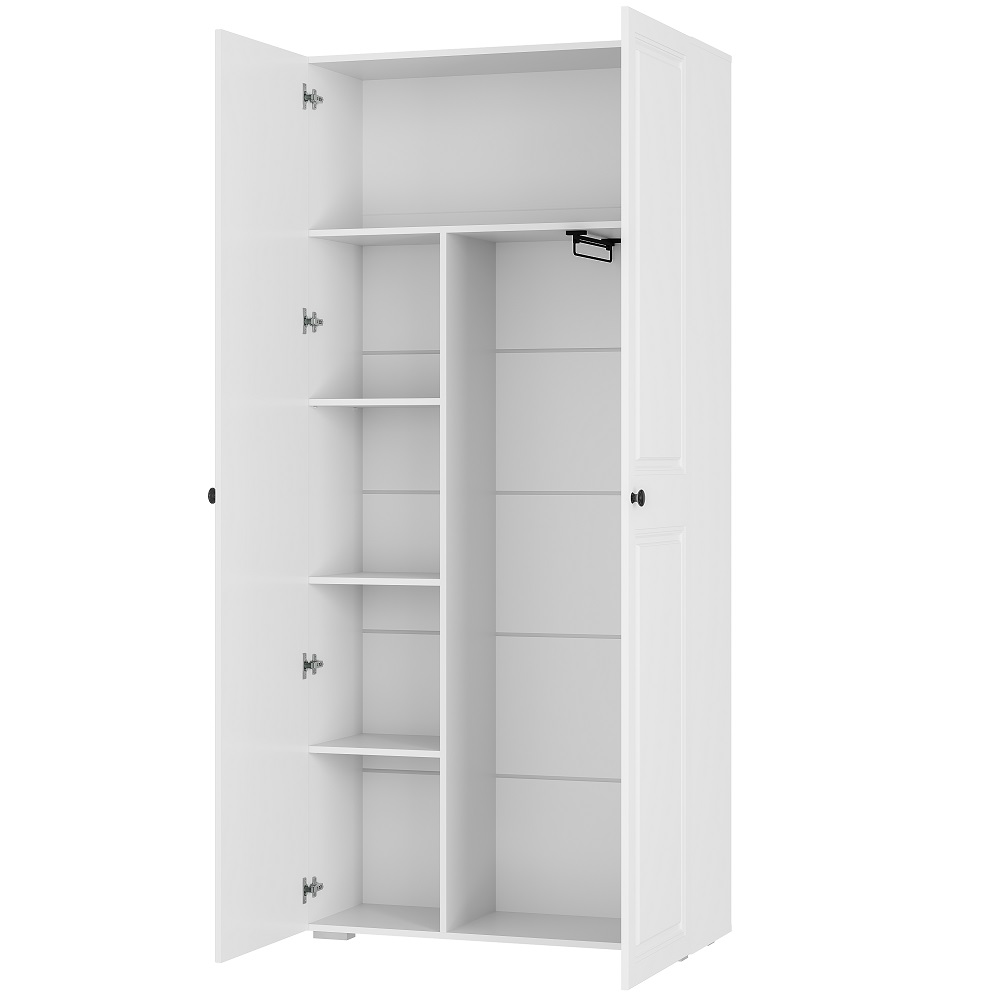 Лаконичный двухдверный шкаф Софт ШК-01 отлично подойдет для организации хранения в прихожей или спальне. Большое количество полок, штанга для деликатной одежды на плечиках помогут разместить одежду и белье в одном месте. Белый декор идеально впишется как в яркий, так и в спокойный интерьер комнаты.