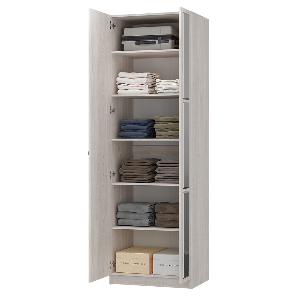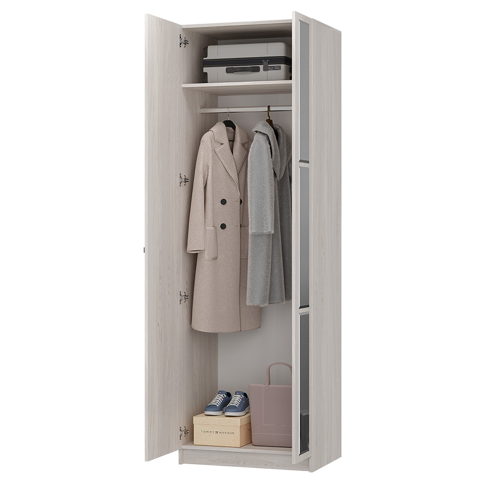 Шкаф для одежды и белья Зарина - гармоничное дополнение к центральной секции из коллекции Зарина. Может быть использован в составе шкафной группы в гостиной или как самостоятельный предмет мебели в прихожей или спальне. Модуль комплектуется стационарной штангой и одной полкой.