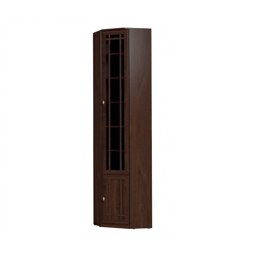 Угловой книжный шкаф - практичное решение для малогабаритных гостиных, библиотек или рабочих кабинетов, где каждый свободный сантиметр важно использовать рационально. Конструкция и габариты шкафа позволят Вам организовать полноценную зону для бережного хранения литературы и сопутствующих вещей. Модуль возможно установить в комнате, высота полотка которой не менее 240 см. Наполнение - комплект регулируемых по высоте полок. Фасад шкафа декорирован тонированным стеклом, свойства которого защитят Ваши книги от вредного воздействия лучей света и загрязнений. Шкаф для книг Sherlock 33 обязательнокрепится к стене за подвесы и межсекционной стяжкой с другими шкафами в комплекте.