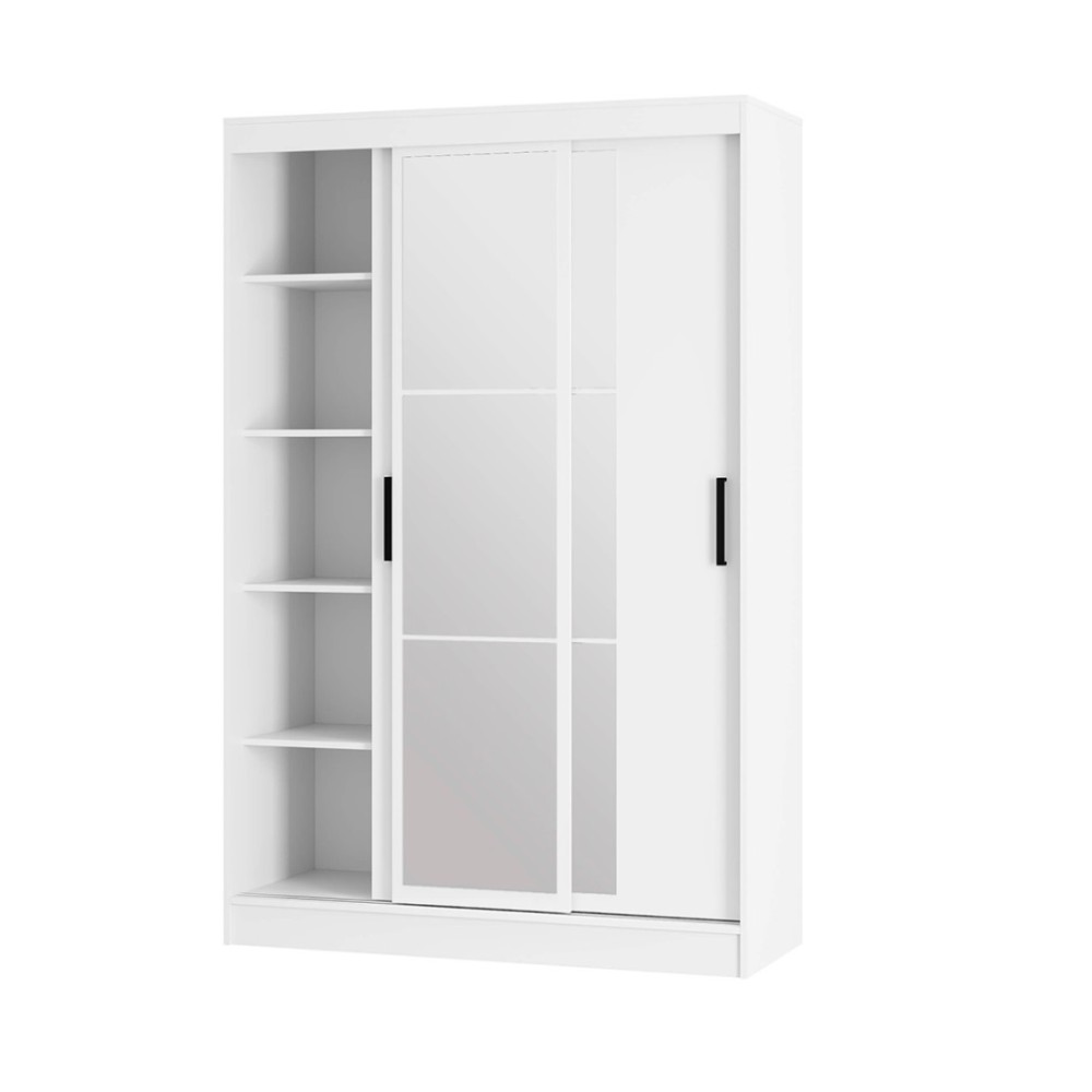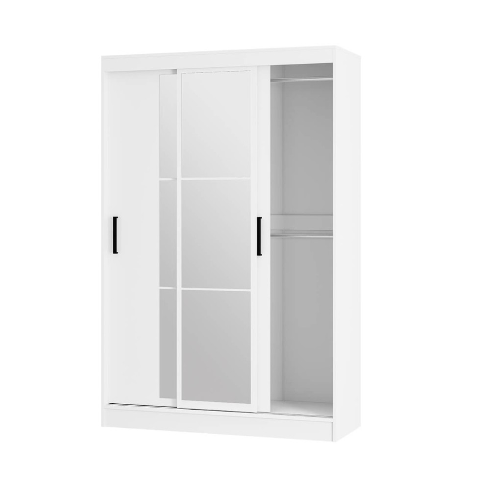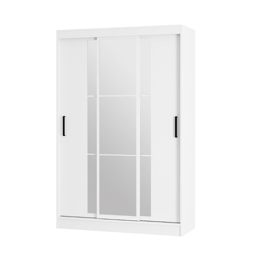 Раздвижные створки снабжены удобными ручками, центральная створка полностью декорирована зеркалом с еврокромкой, которое создаёт иллюзию расширенного пространства.