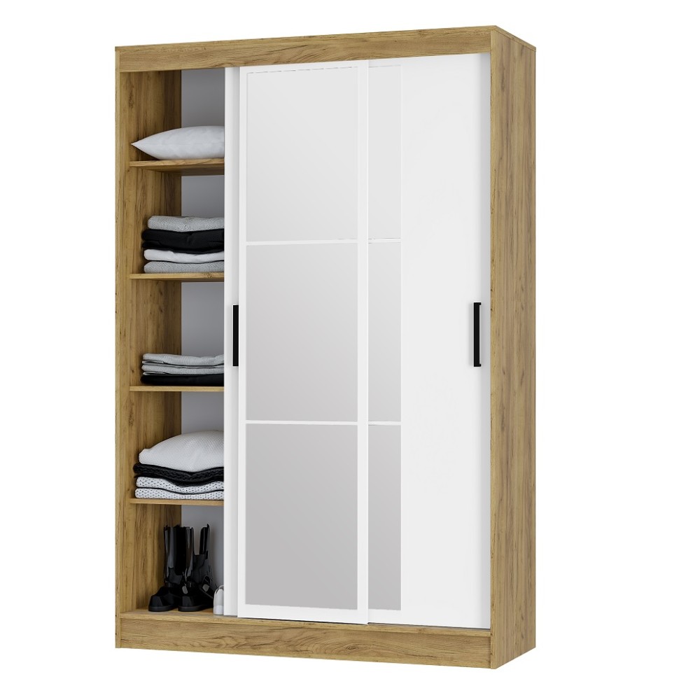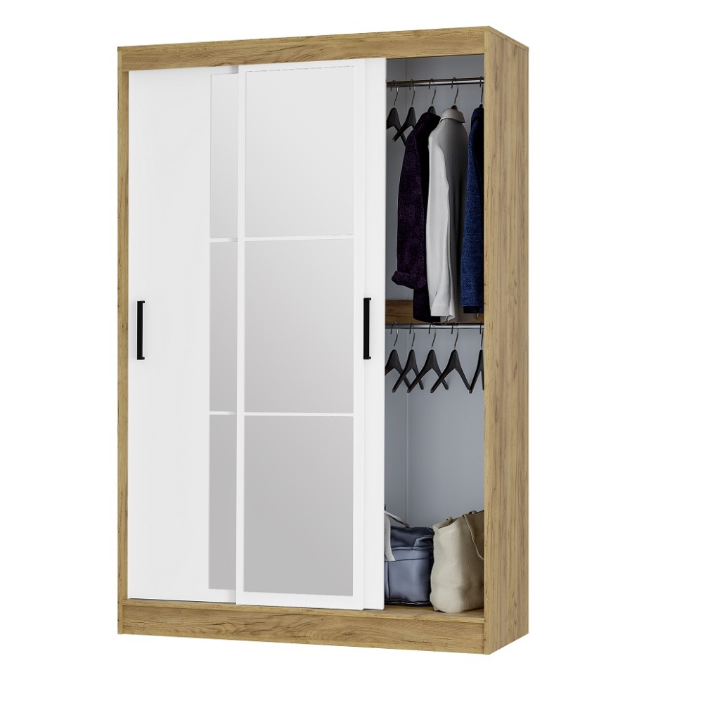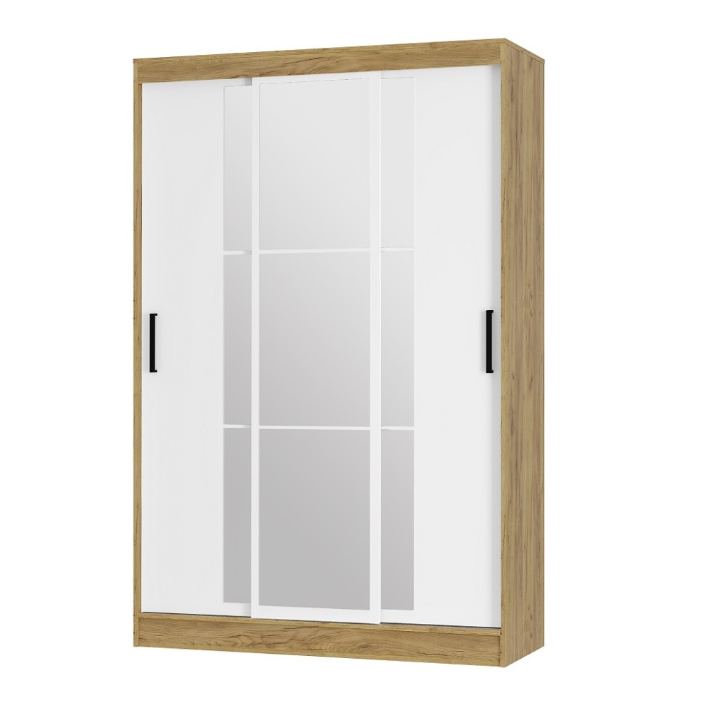 Раздвижные створки снабжены удобными ручками, центральная створка полностью декорирована зеркалом с еврокромкой, которое создаёт иллюзию расширенного пространства.