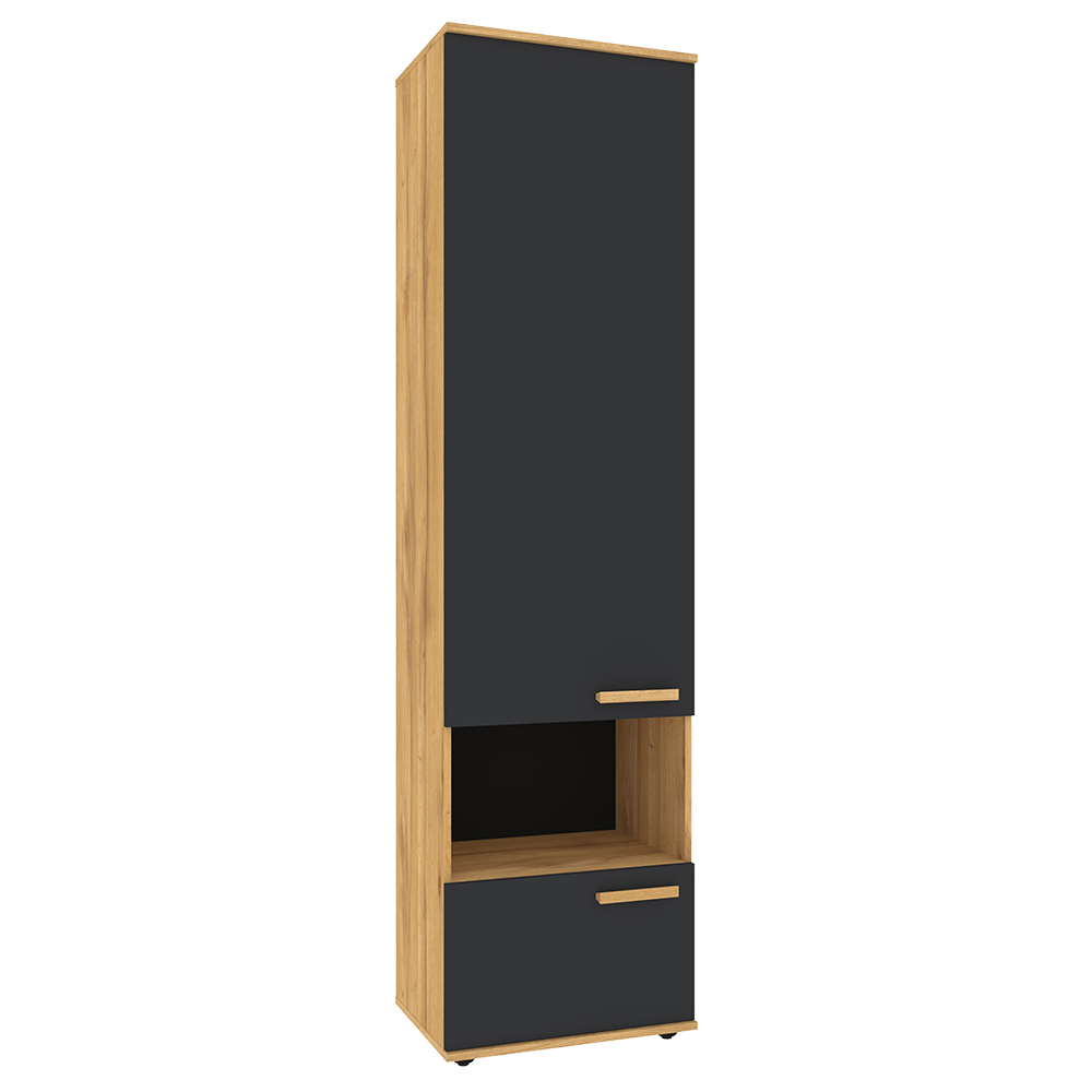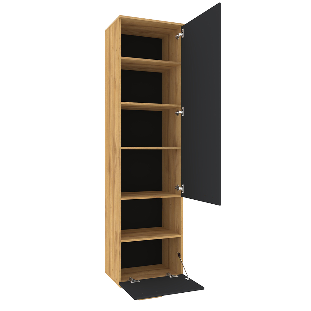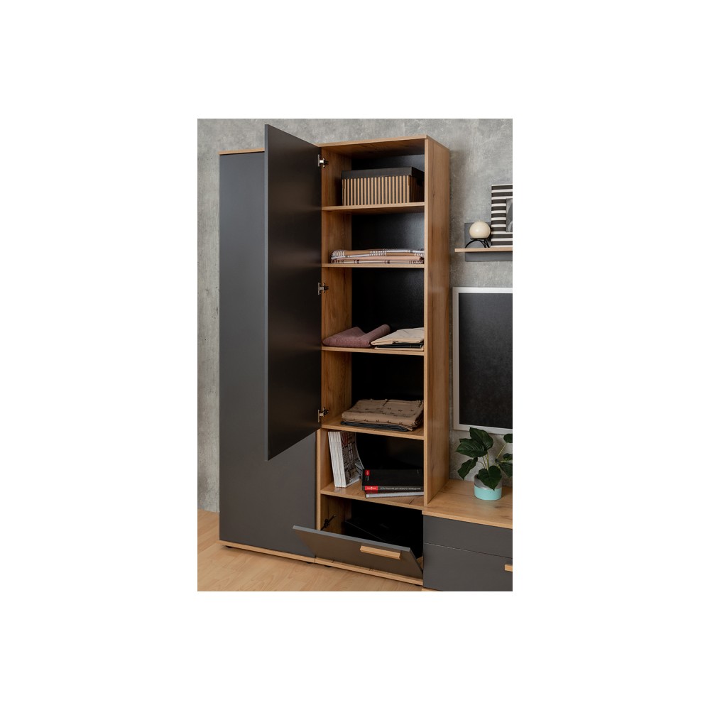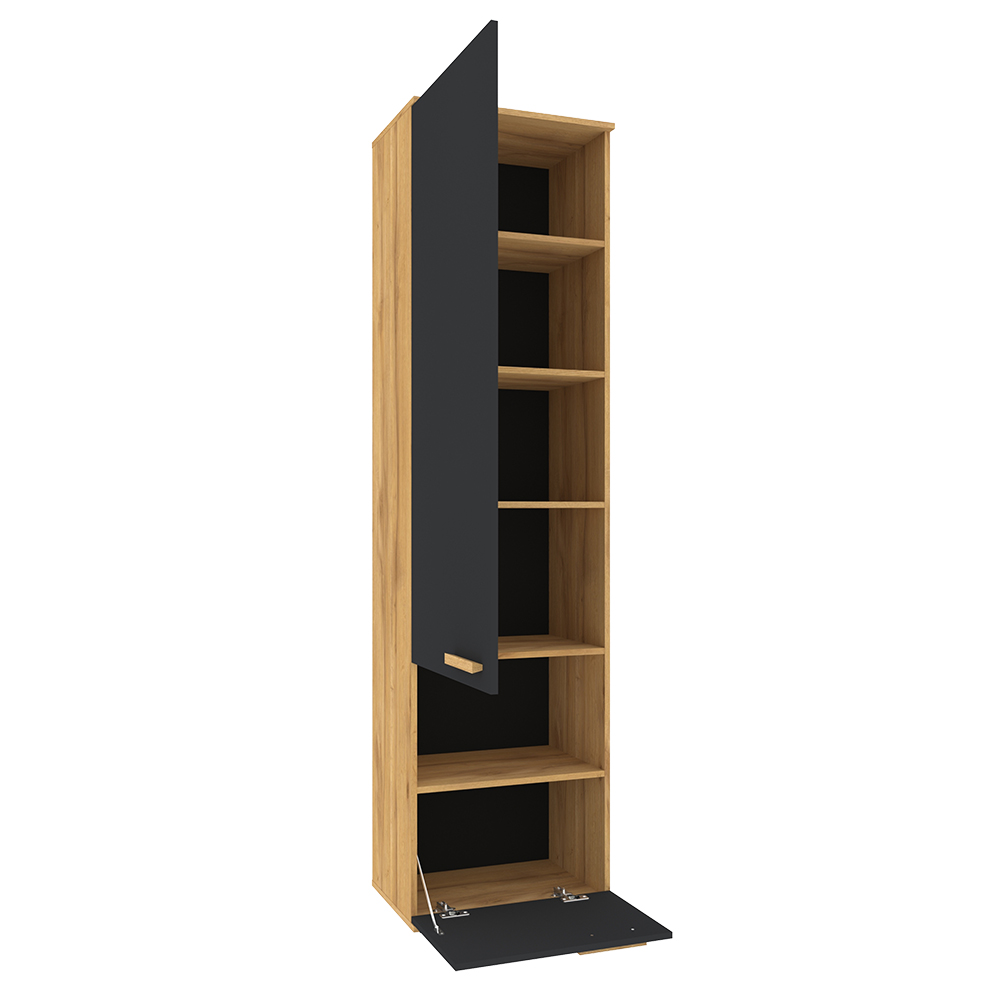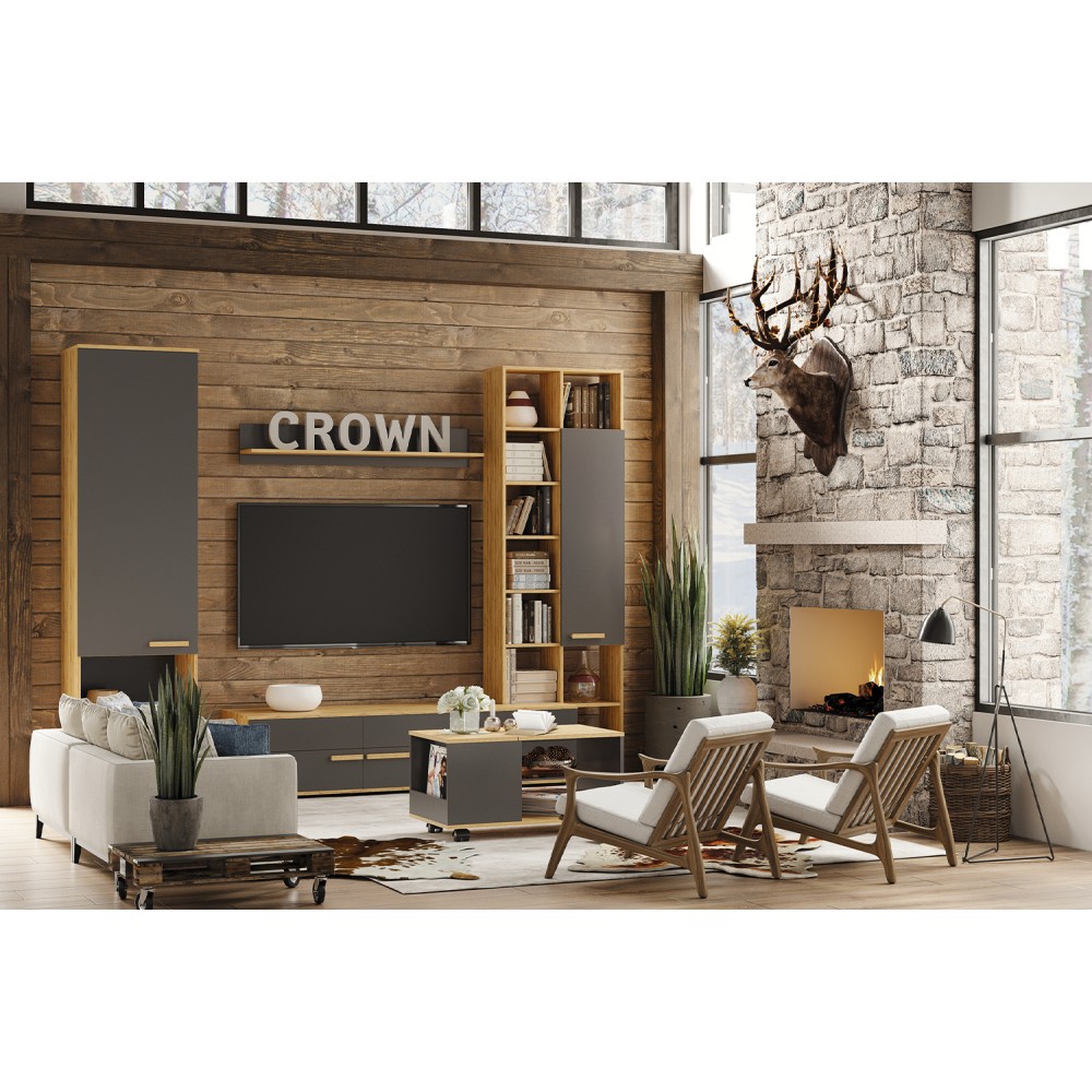 Шкаф 11 Crown - универсальный предмет мебели в гостиной. В комплект входит набор полок, на которых Вы с комфортом разместите все вещи, которые лучше спрятать от лишних глаз: книги, коробки с мелочовкой, ценности. Нижний фасад откидной и имеет кронштейн-ограничитель. Благодаря регулируемым опорам Вы можете компенсировать незначительные неровности пола. Модуль собирается на левую или правую сторону.