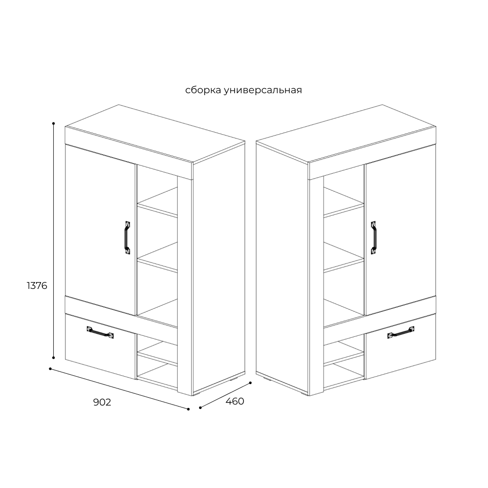 Новая модульная коллекция Прима в актуальном декоре дуб каньон/графит удачно впишется в современную обстановку Вашей квартиры и позволит организовать грамотное хранение вещей в гостиной и спальне. Приятный древесный оттенок корпуса гармонично дополнен матовым графитом, в котором исполнены фасады. Многофункциональный шкаф ШК-17 отличается интересным дизайном и разноплановым наполнением. Сборка на обе стороны.