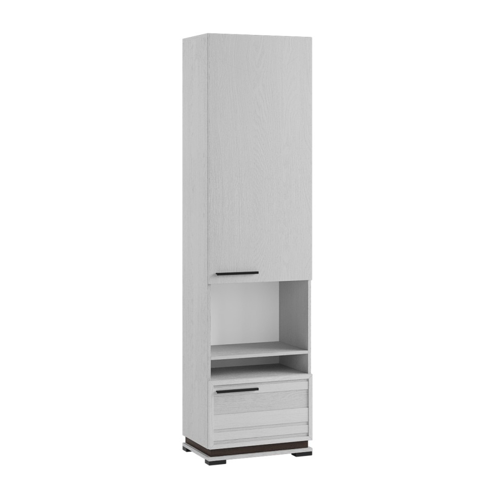 Пенал - незаменимый вид шкафа в любой гостиной. Шкаф-пеналМодена - отличный вариант для хранения вещей на закрытыхполках и в открытой секции. Прекрасно дополняет прочие модули коллекции и за счет своих габаритов вмещает большое количество предметов, от книг до домашней утвари и предметов декора. Нижняя дверца декорирована геометрическими вставками цвета ясень анкор светлый, что добавляет шкафу-пеналу стиля.