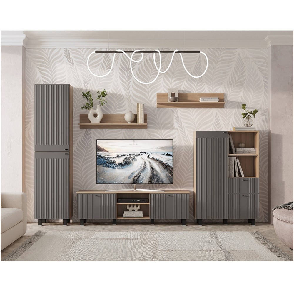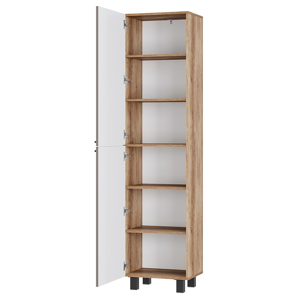 Благодаря компактным размерам шкаф-пенал не займет много места. Вертикальная фрезеровка на фасадах и корпус в древесной гамме придают модульной серии Олива особый шарм и индивидуальность.