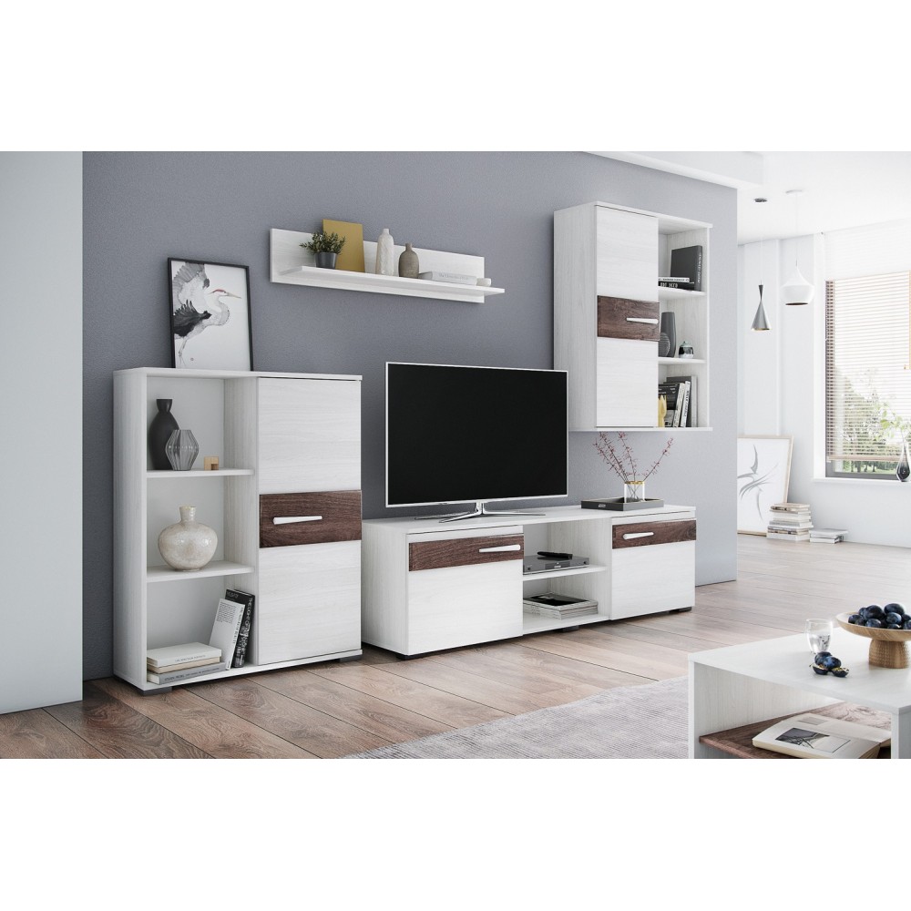 Гостиная Акита Шкаф-пенал универсальный ясень анкор светлый/дуб бомонд какао