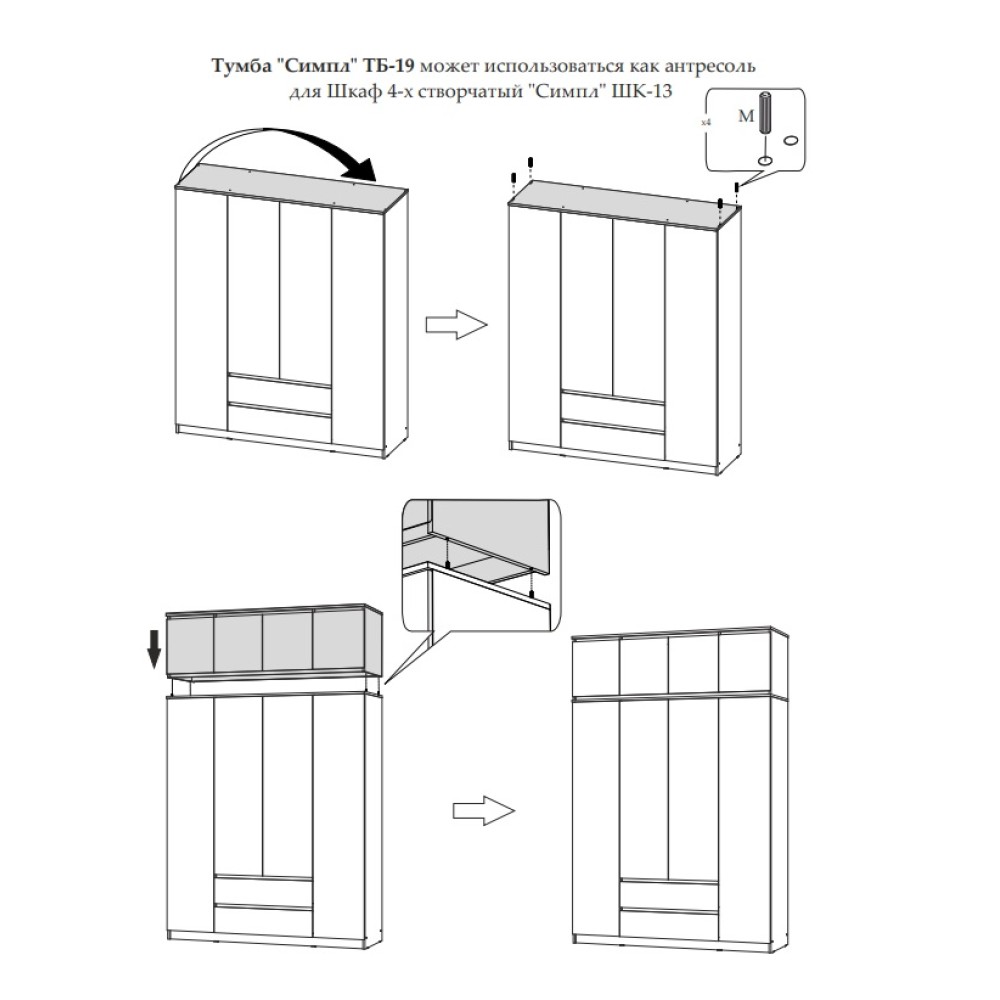 Мечтаете о большом вместительном шкафе, в который поместятся одежда на плечиках, вещи в сложенном виде, аксессуары и другие вещи? Обратите внимание на шкаф Симпл ШК-13 с антресолью. Наполнение модуля - две закрытые ниши, три стационарные штанги и два выдвижных ящика. Цветовая гамма шкафа визуально увеличит пространство и позволит вписать модуль в любой современный интерьер.