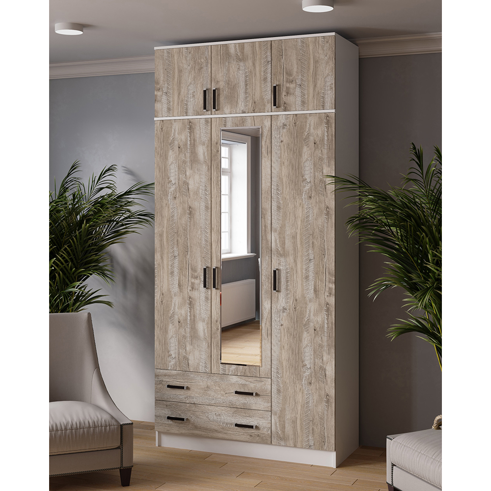 Компактный, но вместительный комбинированный шкаф с антресолью Лагуна с зеркалом позволит разместить белье, одежду и аксессуары. Оригинальный дизайн и лаконичные формы дополнят интерьер спальни, гостиной или прихожей.