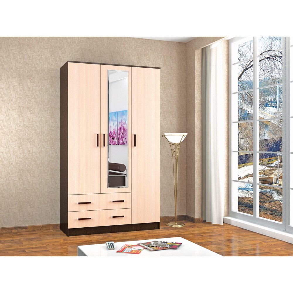 Компактный, но вместительный шкаф комбинированный Лагуна с зеркалом позволит разместить белье, одежду и аксессуары. Оригинальный дизайн и лаконичные формы дополнят интерьер спальни, гостиной или прихожей.