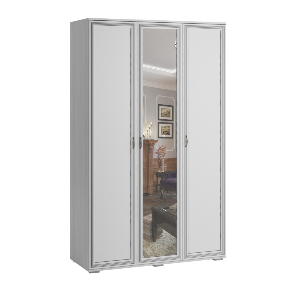 Трехстворчатый шкаф для одежды и белья Ливорно. Оснащен штангой и зеркалом в центральной частидля организации гардеробной зоны.Материал фасада:Рамочный профиль из МДФ, 3D-вставка из МДФ.Материал корпуса:ЛДСП.Установлены петли с доводчиками для бесшумного закрывания и шариковые направляющие полного выдвижения.Фурнитура:«Старая бронза» 96 мм.