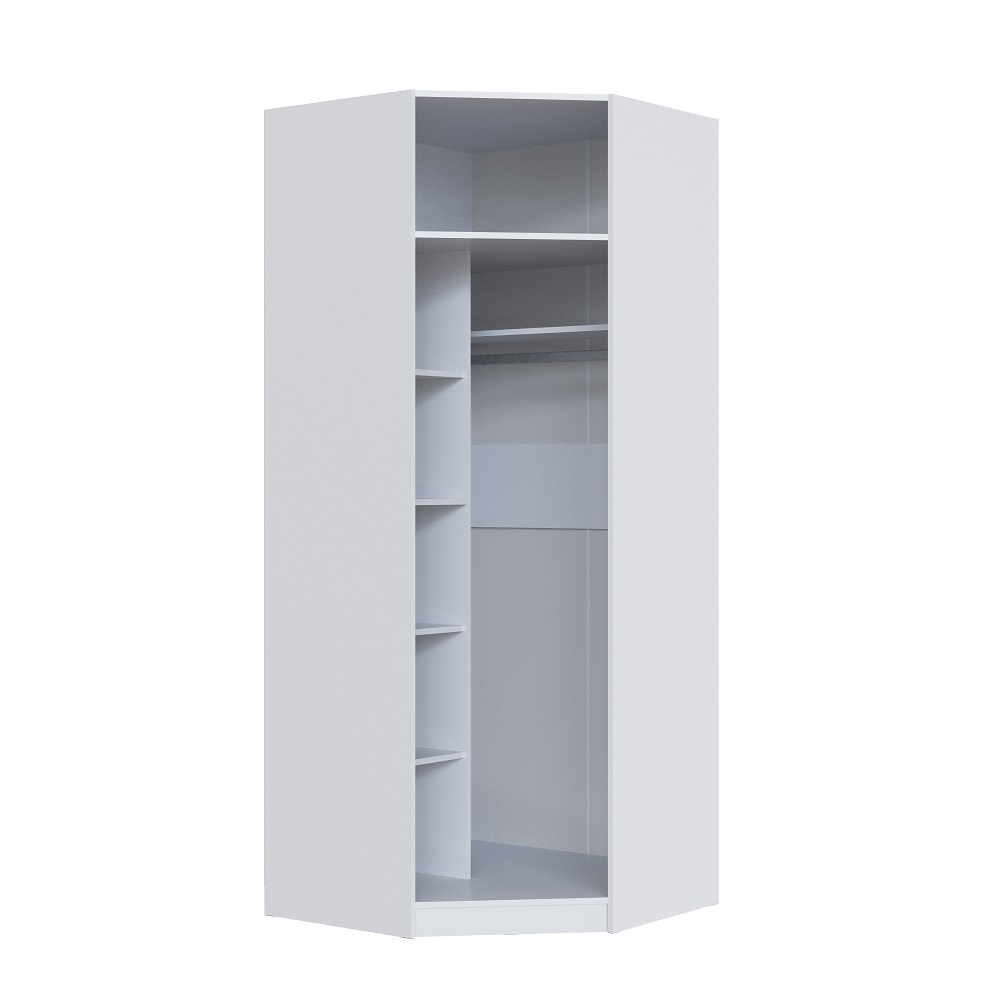 Шкаф угловой конфигурации Апполия решит вопрос хранения в классической прихожей, гостиной или спальне. Наполнение шкафа - стационарная штанга для одежды на плечиках, комплект полок и вместительная верхняя полка.