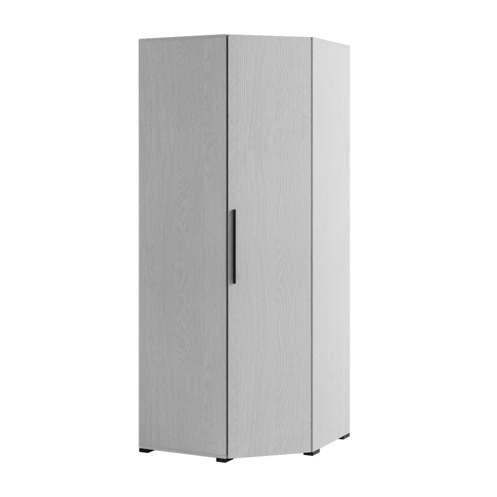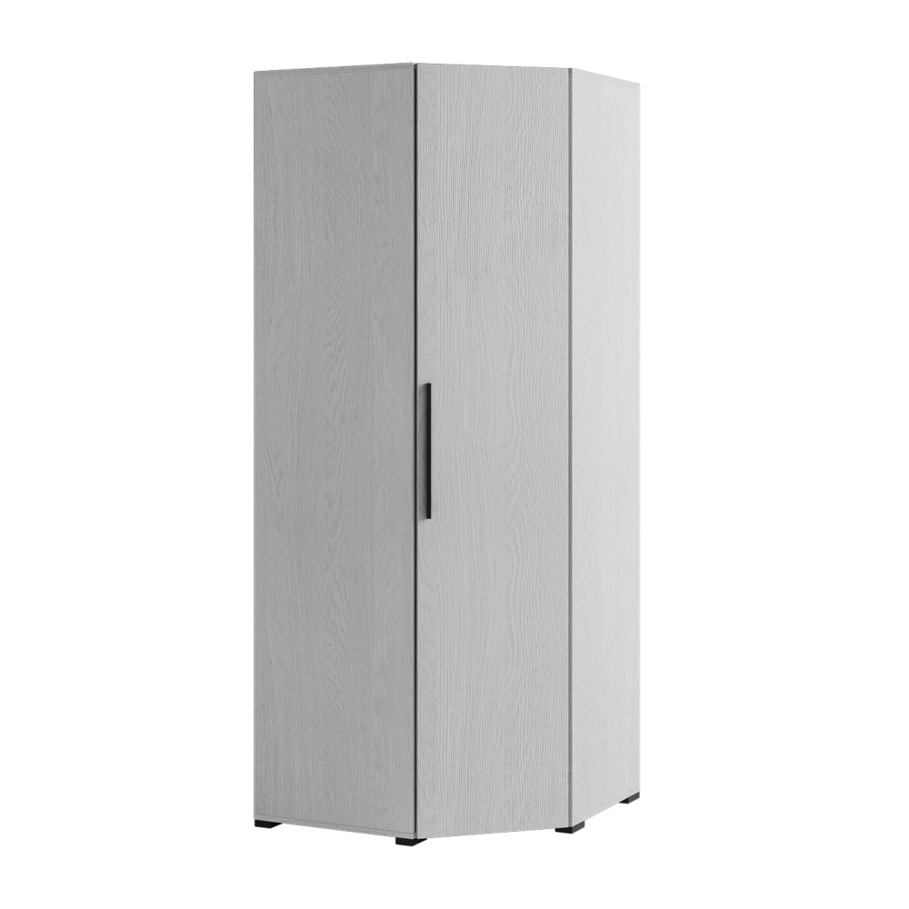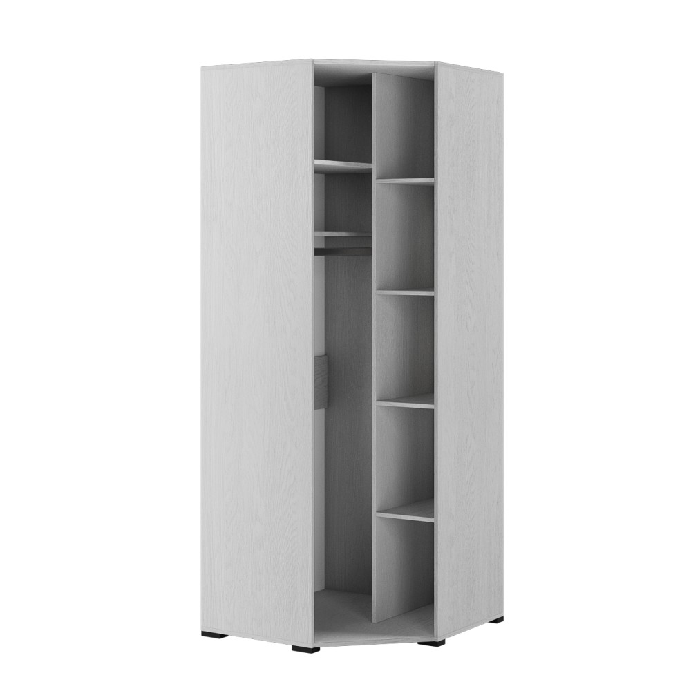 Угловой шкаф незаменим в спальной комнате и по функциональности не уступает шкафам для одежды другой конструкции. Угловой шкаф Модена достаточно вместителен благодаря своему наполнению: комплект полок и продольная штанга пригодятся для хранения вещей на плечиках, деликатной одежды и одежды в сложенном виде. Угловая конструкция модуля позволит занять свободный угол в комнате и организовать хранение рационально.