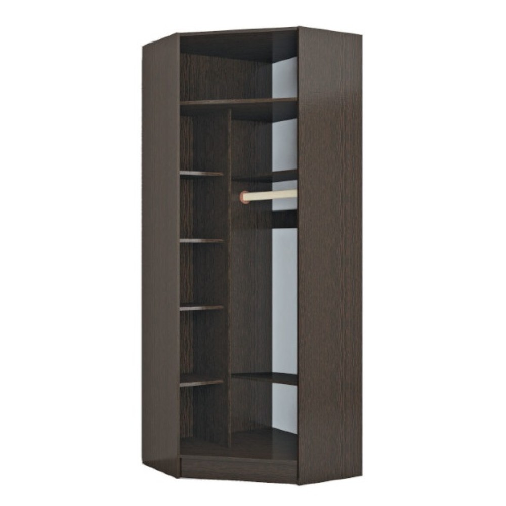 Однодверный угловой шкаф с зеркалом. Оснащен всем необходимым для грамотного и удобного хранения вещей в сложенном виде и на плечиках.