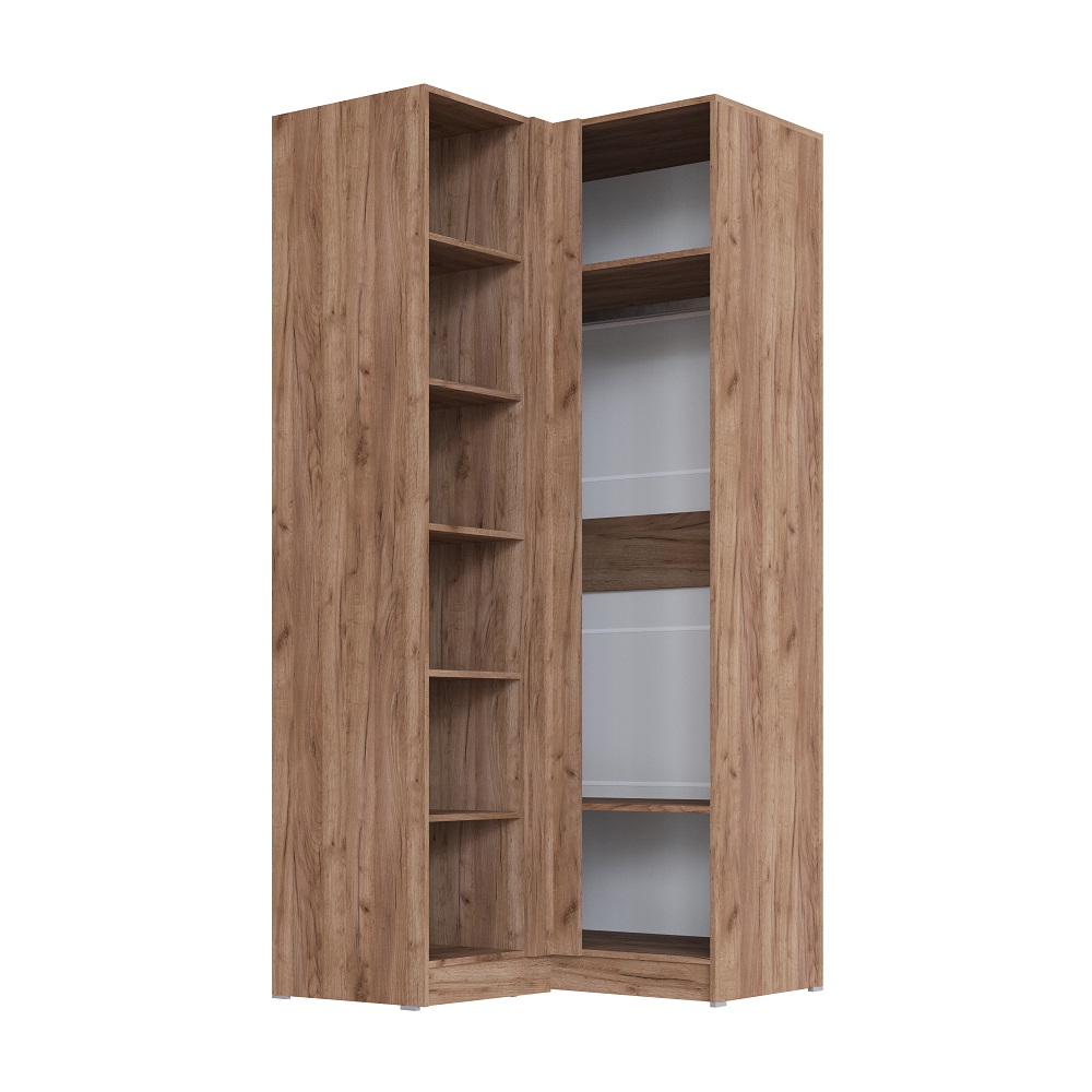 Шкаф угловой Вегас благодаря своей конструкции позволяет организовать грамотное хранение вещей, используя при этом минимум пространства. Шкаф разделен на две секции, одна из которых оснащена полками, а другая - штангой для одежды.