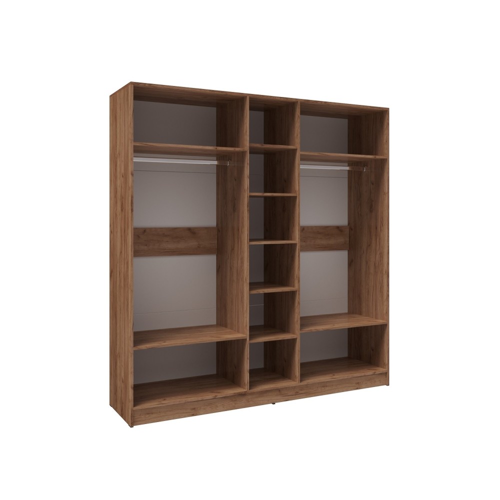 Шкаф Вегас 2 м представляет собой продуманную систему хранения верхней одежды, платьев, деликатных вещей на плечиках и в сложенном виде, коробок и всего того, что нужно спрятать от лишних глаз. По вместимости один такой модуль заменяет полноценную гардеробную. Наполнение шкафа - две хромированные стационарные штанги и комплект полок.