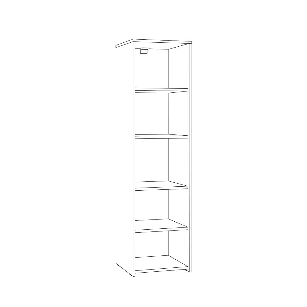 Конструкция шкафа представляет собой пенал с одной распашной дверью и двумя секциями. Внутри расположены пять удобных полок, позволяющих разместить множество предметов. Прочная и долговечная фурнитура выполнена из металла и дерева.