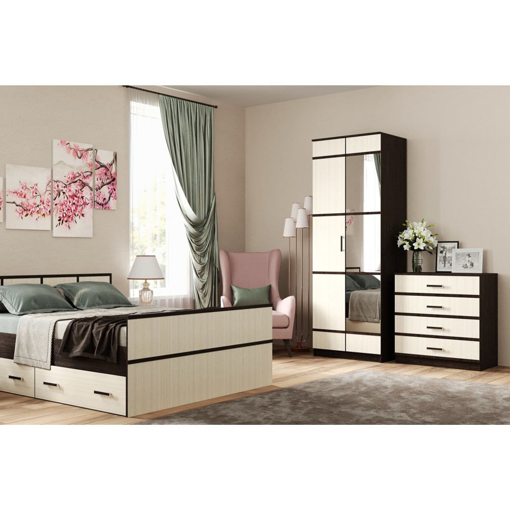 "Сакура" шкаф пл.бельев. 2-х ств. зеркала осн