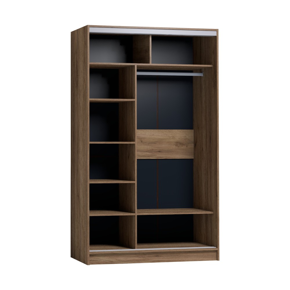 Продуманное внутреннее наполнение шкафа состоит из стеллажа для белья и стационарной штанги длиной 725 мм. На ней поместится как минимум 10 плечиков с верхней одеждой. Зеркальная дверца с обратной стороны проклеена специальной защитной пленкой, которая предотвратит от падения осколков, если она разобьется. В изготовлении шкафов-купе STRIKE использована прочная стальная система треков «Найди» цвета Металлик. Двери шкафов дополнены ручками из массива и шлегелем, который смягчает удары дверей при закрывании, а также защищают вещи от попадания пыли. Благодаря скрытым полкодержателям полки жестко крепятся на необходимой высоте. Дополнительные модули:Шкаф-купе 1200 КарнизиБрючница 3- помогут в полной мере раскрыть потенциал шкафов-купе STRIKE.