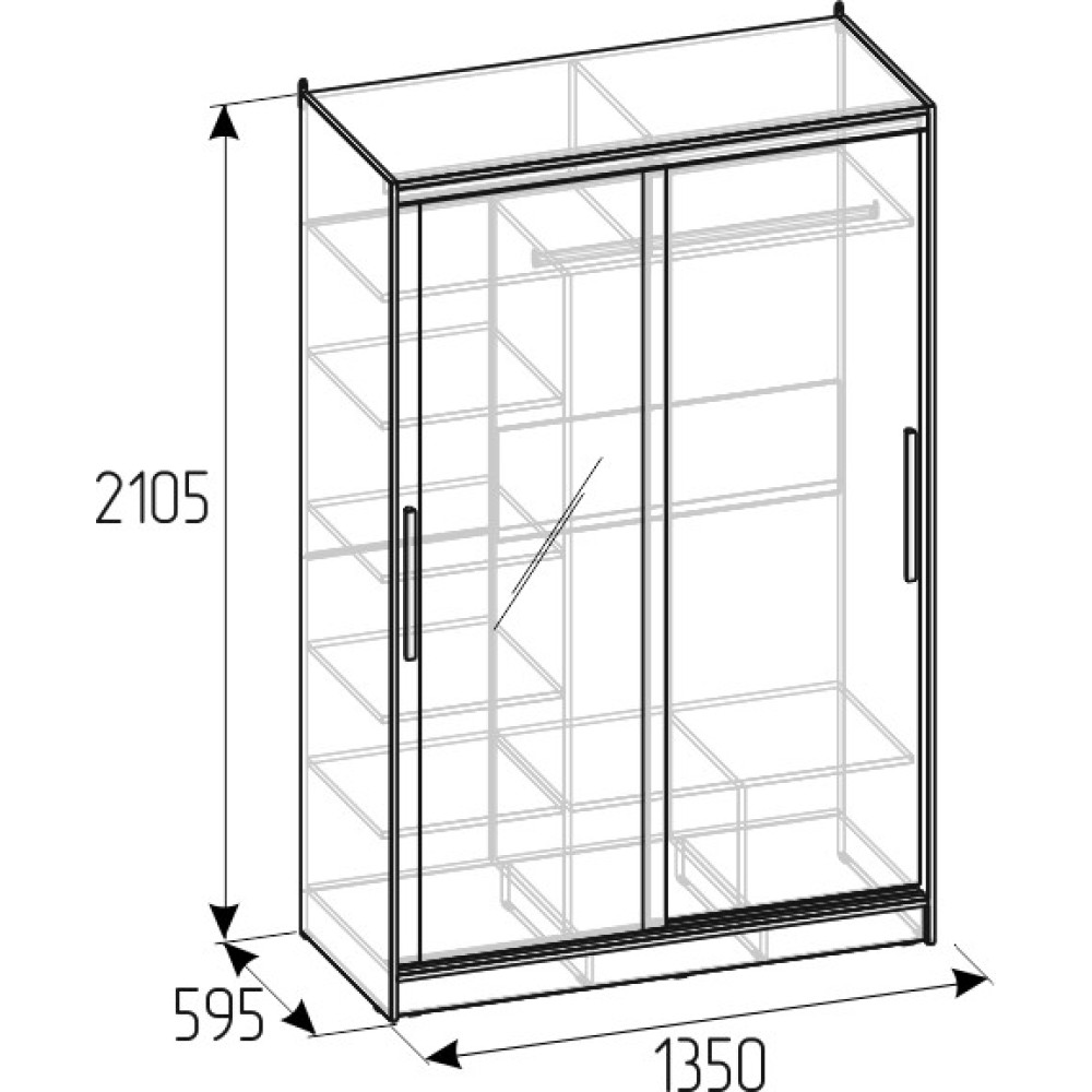 Шкаф-купе STRIKE шириной 1350 мм подойдет для любой комнаты: спальни, гостиной, прихожей, детской. Продуманное внутреннее наполнение шкафа состоит из стеллажа для белья, стационарной штанги длиной 843 мм. Зеркальный фасад с обратной стороны проклеен специальной защитной пленкой, которая предотвратит падение осколков в том случае, если зеркало разобьется. В изготовлении шкафов-купе STRIKE использована прочная стальная система треков «Найди» цвета Металлик. Двери шкафов дополнены ручками из массива и шлегелем, который смягчает удары дверей при закрывании, а также защищают вещи от попадания пыли. Благодаря скрытым полкодержателем полки жестко крепятся на необходимой высоте.