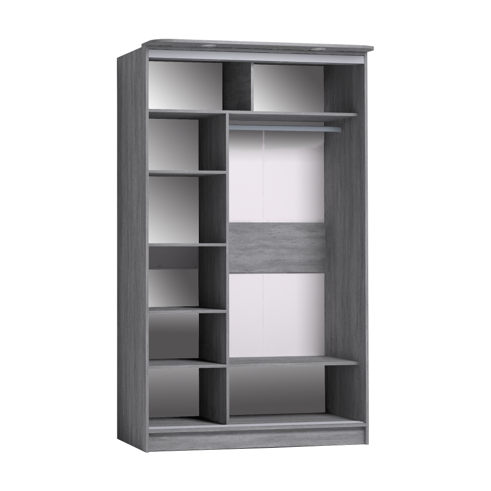 Продуманное внутреннее наполнение шкафа состоит из стеллажа для белья и стационарной штанги длиной 725 мм. На ней поместится как минимум 10 плечиков с верхней одеждой. В изготовлении шкафов-купе STRIKE использована прочная стальная система треков «Найди» цвета Металлик. Двери шкафов дополнены ручками из массива и шлегелем, который смягчает удары дверей при закрывании, а также защищают вещи от попадания пыли. Благодаря скрытым полкодержателям полки жестко крепятся на необходимой высоте. Дополнительные модули:Шкаф-купе 1200КарнизиБрючница 3- помогут в полной мере раскрыть потенциал шкафов-купе STRIKE.
