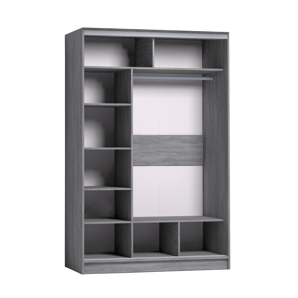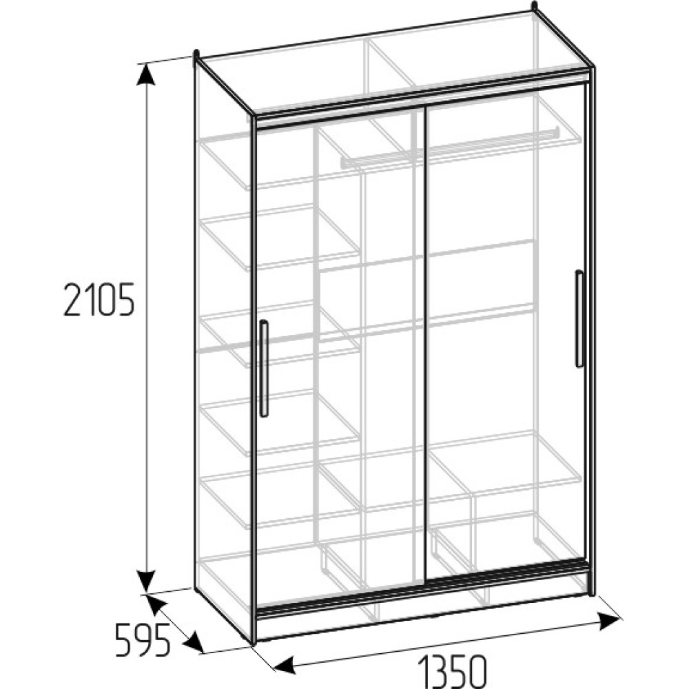 Продуманное внутреннее наполнение шкафа состоит из стеллажа для белья и стационарной штанги длиной 843 мм. На ней поместится как минимум 10 плечиков с верхней одеждой. В изготовлении шкафов-купе STRIKE использована прочная стальная система треков «Найди» цвета Металлик. Двери шкафов дополнены ручками из массива и шлегелем, который смягчает удары дверей при закрывании, а также защищают вещи от попадания пыли. Благодаря скрытым полкодержателям полки жестко крепятся на необходимой высоте. Дополнительные модули:Шкаф-купе 1350 КарнизиБрючница 3- помогут в полной мере раскрыть потенциал шкафов-купе STRIKE.