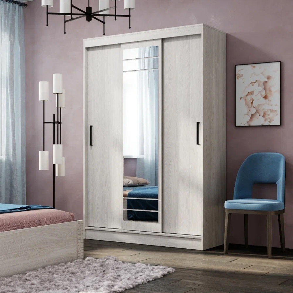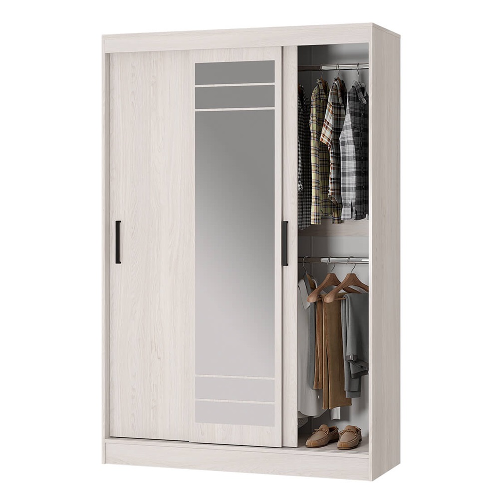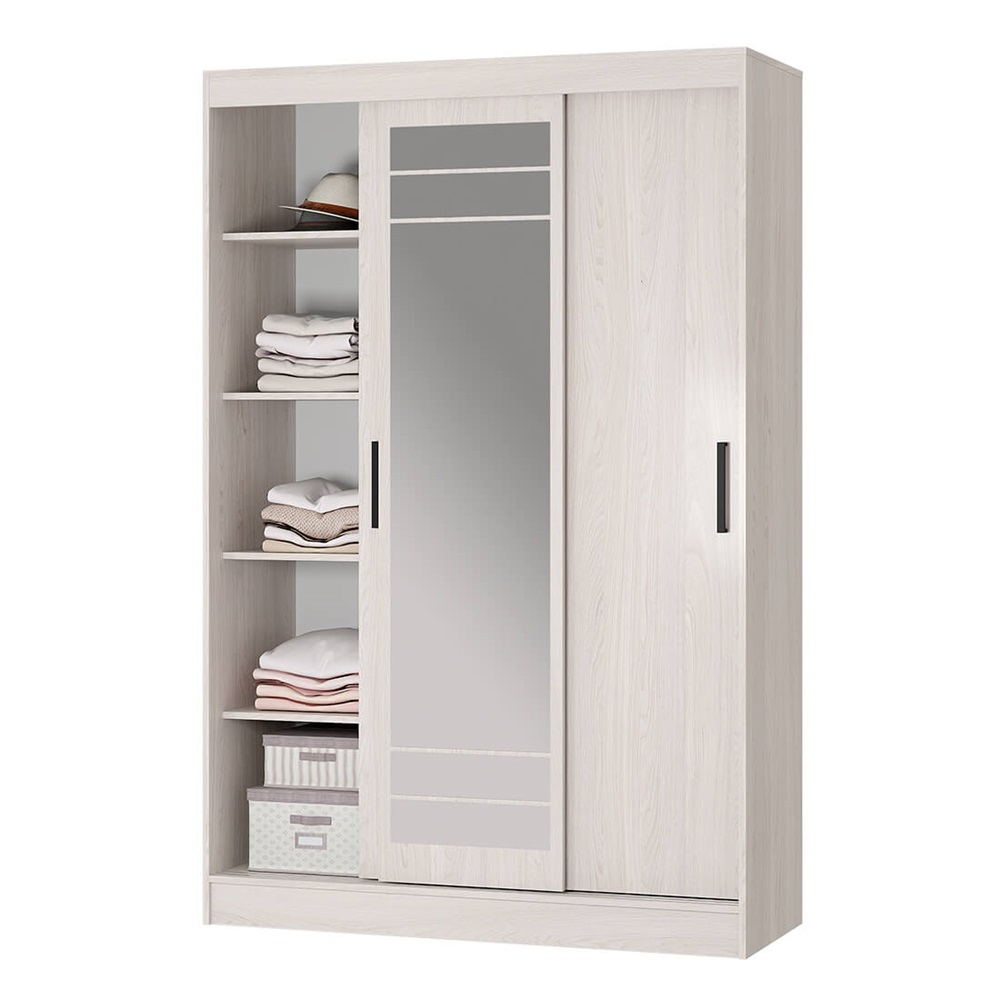Эргономичный шкаф-купе Тео ШКК-02 сочетает в себе оптимальный размер и продуманное наполнение. Двери оснащены удобными ручками, центральная створка – зеркалом с еврокромкой, что визуально расширяет окружающее пространство. Внутри шкафа расположен комплект полок для одежды и вещей в сложенном виде и коробок, а также две хромированные штанги.