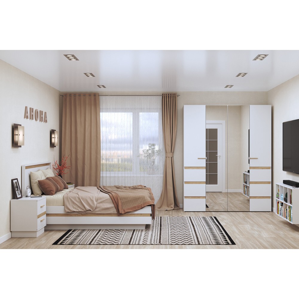 Спальня Анона станет вашим уютным уголком, где вы сможете отдохнуть после долгого дня и насладиться спокойным сном. Серия Анона выполнена в двух цветах: белый и антрацит с акцентными вставками в декоре дуб сонома.