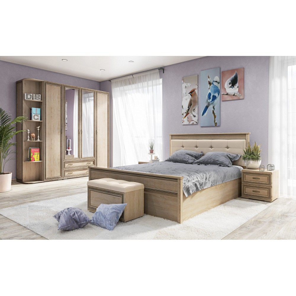 Спальня Ливорно в цвете Дуб сонома- это классическое решение в современных формах и реалиях. Теплый оттенок дерева создает уют, а большое количество мест для хранения позволит каждой вещи найти свое место.Материал фасада:Рамочный профиль из МДФ, 3D-вставка из МДФ.Материал корпуса:ЛДСП.Установлены петли с доводчиками для бесшумного закрывания и шариковые направляющие полного выдвижения.Фурнитура:«Старая бронза» 96 мм.
