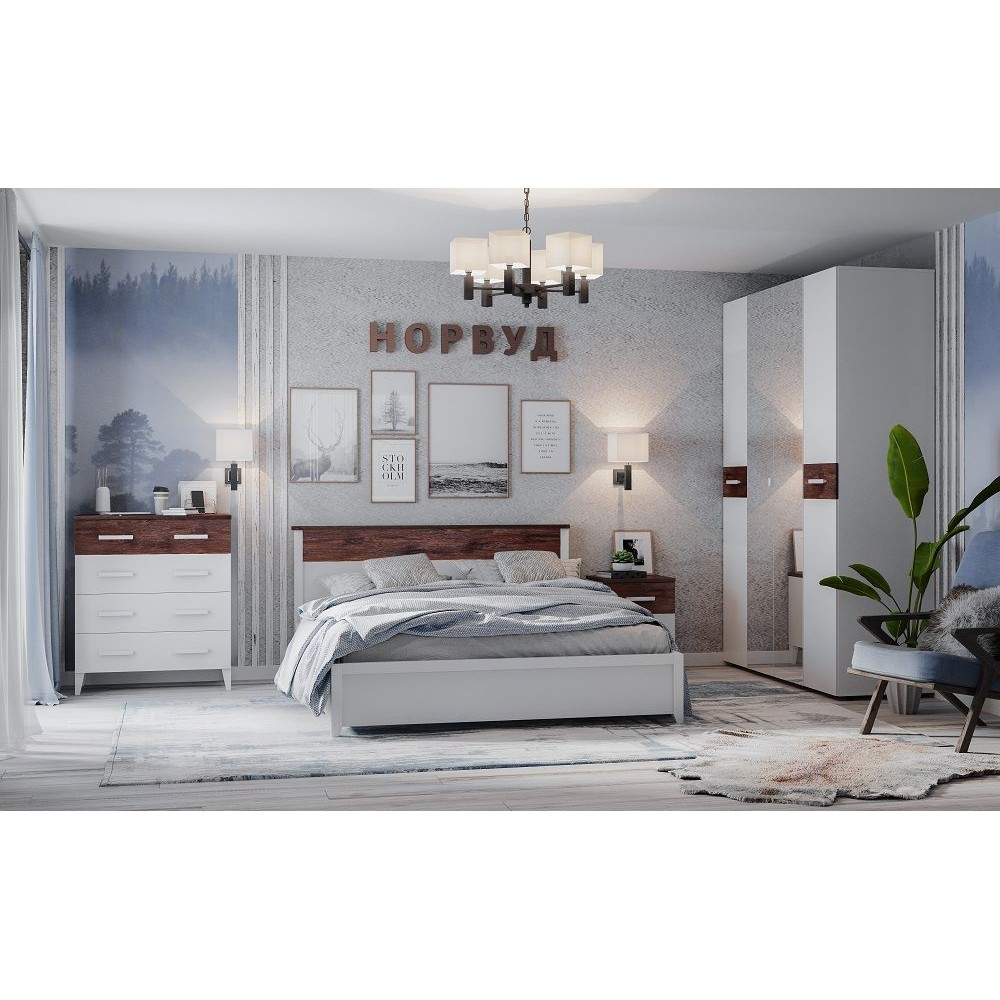 Спальня Норвуд - фаворит среди любителей классики в современном исполнении. Декор, сочетание белого с орехом шоколадным, делает мебель стильной, а помещение - светлым и визуально просторным. Коллекция представлена базовым набором модулей комбинируя которые между собой, Вы сможете создать уютную и функциональную спальню. Вместительные шкафы со стеклянными дверцами, комфортабельные кровати размером от 140 до 180 см в ширину, прикроватная тумба на ножках, широкий комод и туалетный столик-трансформер позволят Вам грамотно обустроить спальную зону и хранить все Ваши вещи, занимая при этом минимум места.