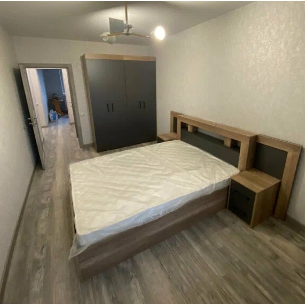 Новая модульная коллекция Прима в актуальном декоре дуб каньон/графит удачно впишется в современную обстановку Вашей квартиры и позволит организовать грамотное хранение вещей в гостиной и спальне. Приятный древесный оттенок корпуса гармонично дополнен матовым графитом, в котором исполнены фасады. Комплект для спальни состоит из двуспальной кровати, двух прикроватных тумб, двух шкафов для одежды и комода.
