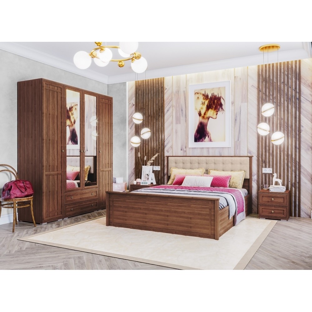 Коллекция мебели для спальни "Ричард" создает естественную и уютную атмосферу, поднимающую настроение и радующую взор. Благородство патины и подчеркнутый объем филенок придают фасадам лаконичный и респектабельный вид. Модульная программа представлена двумя цветами: Орех Донской и Ясень Анкор Светлый. Нежные оттенки натурального дерева эффектно подчеркивают великолепие спального гарнитура, вплетая в него природную айдентику. Впечатление солидности, надежности производит фурнитура: петли с доводчиками для бесшумного закрывания, шариковые направляющие полного выдвижения. Обращают внимание кровати с надежной и функциональной конструкцией, представленные в этой программе двумя размерами: 1,4 и 1,6 метра.