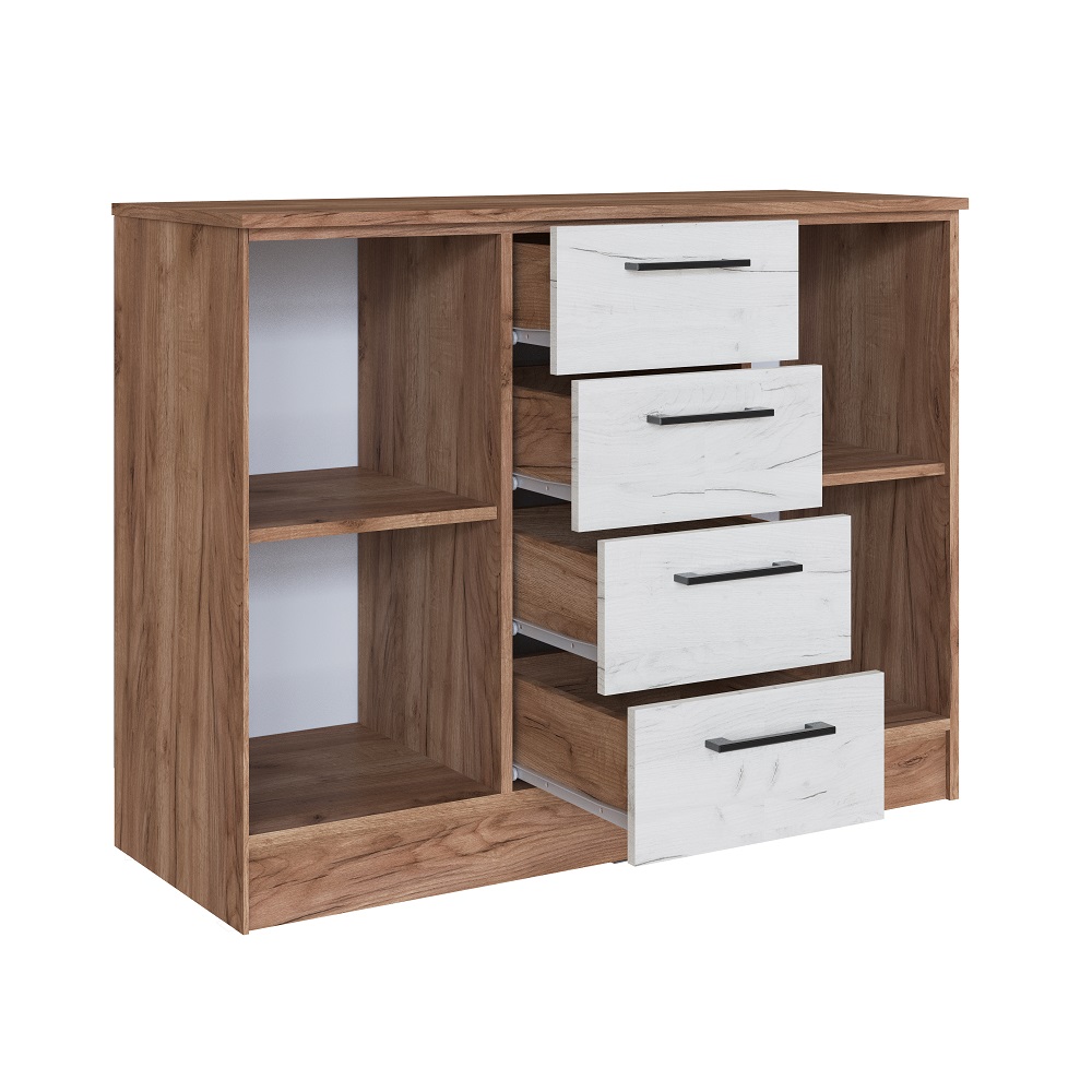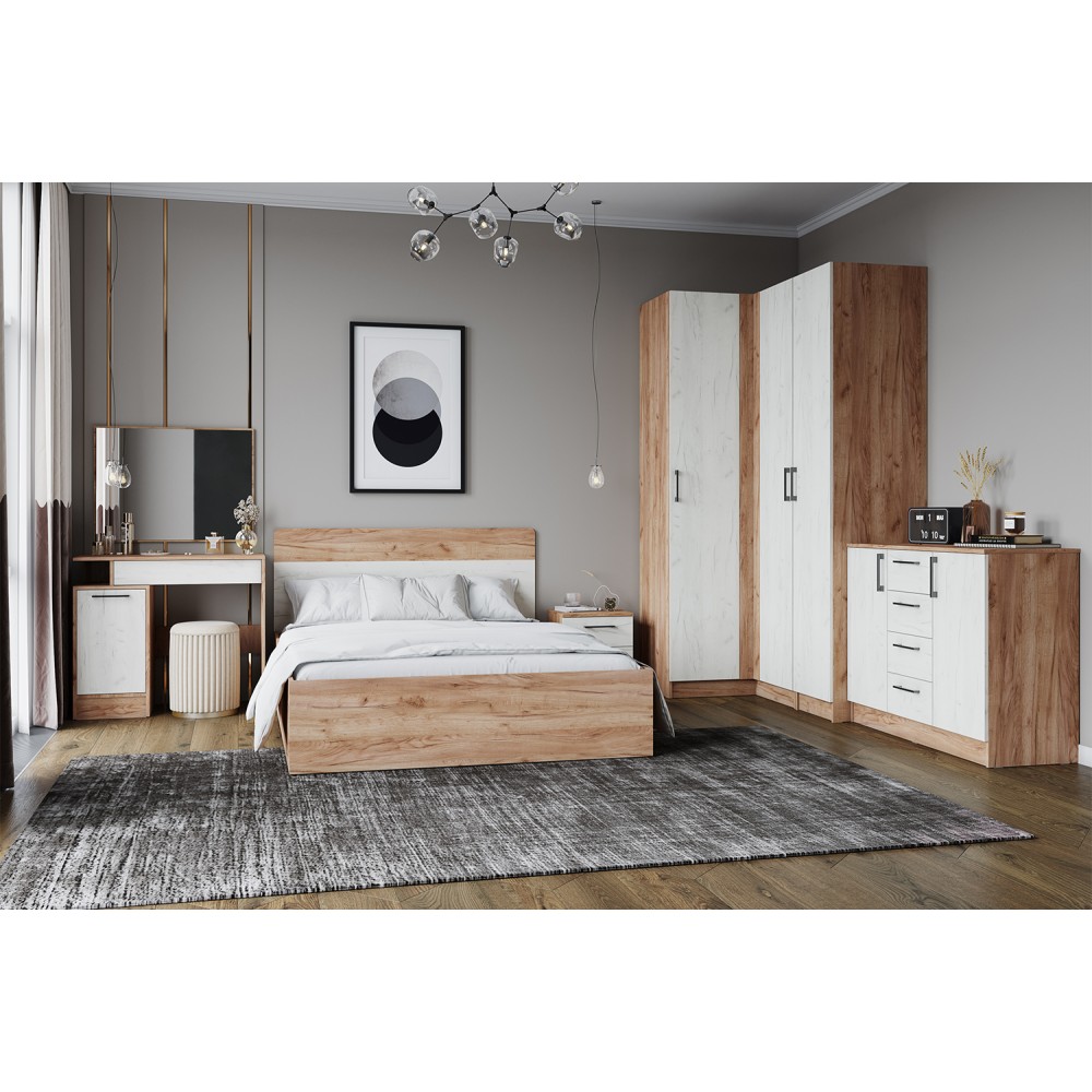 Современная модульная спальня Вегас привлекает своим контрастным декором - сочетанием двух оттенков дуба с древесной текстурой.