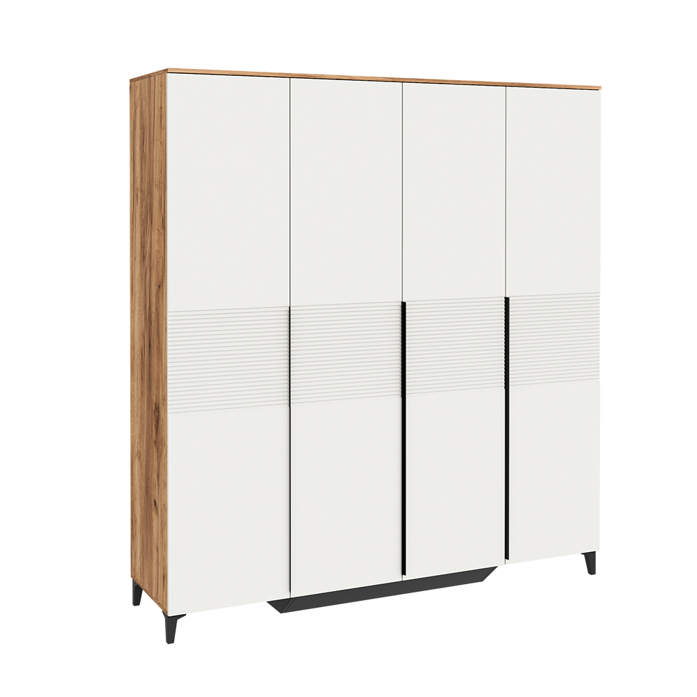 Современная спальня с изысканными фрезерованными белоснежными фасадами МДФ в сочетании с каркасами в древесных оттенках придаст вашей спальне неповторимости. Установка отдельных ящиков позволит организовать внутреннее пространство шкафов по Вашему желанию.