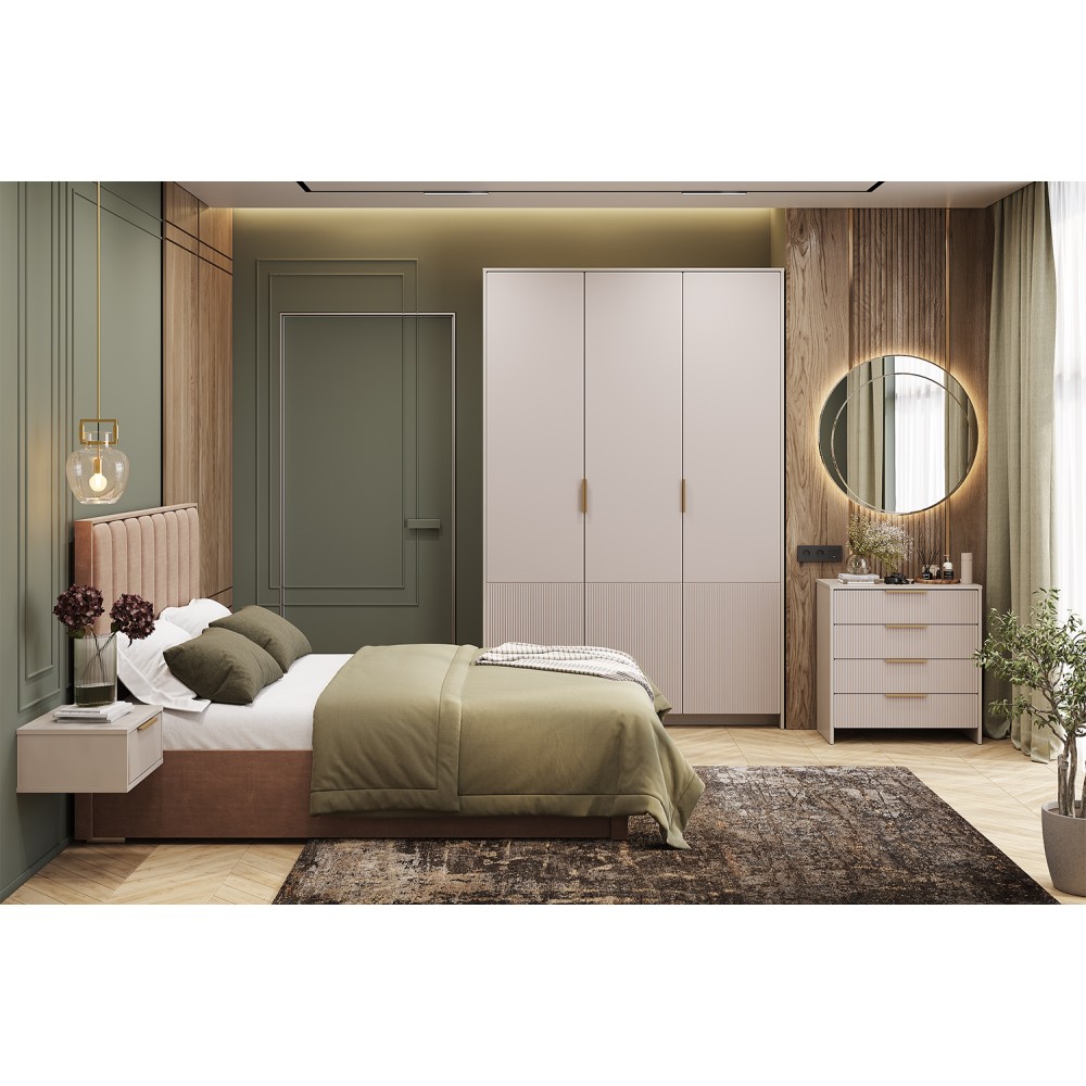 Спальня Пандора — это идеальное решение для создания комфортного и стильного пространства, где каждый элемент продуман до мелочей. Этот комплект сочетает в себе современный дизайн, функциональность и высокое качество материалов, что делает его превосходным выбором для любого интерьера.
