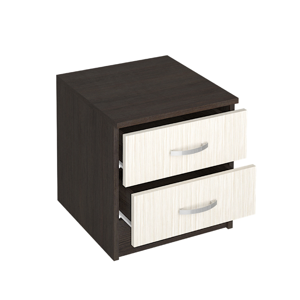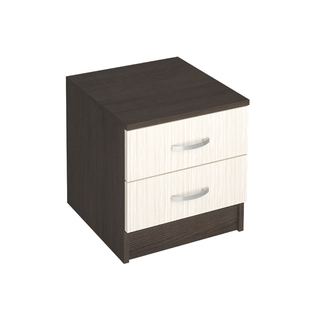Прикроватная тумба из серии Ронда. Выполнена из ЛДСП в сочетании двух декоров с древесной текстурой. Ящики комплектуются роликовыми направляющими. Ручки пластиковые.