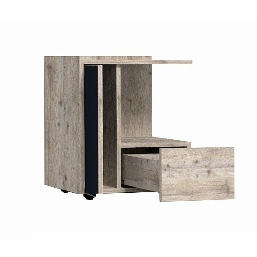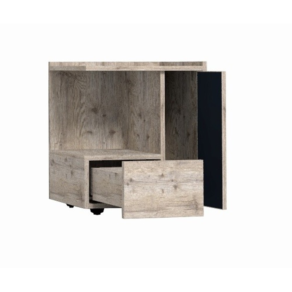Тумба прикроватная 42 Nature имеет необычную конструкцию. Несмотря на небольшие габариты, модуль сочетает в себе открытую полку и выдвижной ящик, нишу и отделение за дверцей. Удобная высота и отсек сбоку позволяет спрятать в тумбу журналы или ноутбук. Возможна левостороння и правосторонняя сборка.