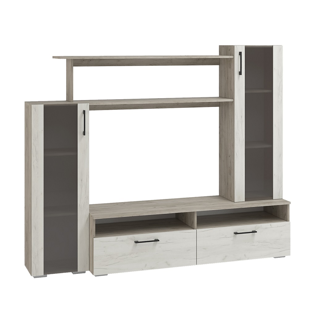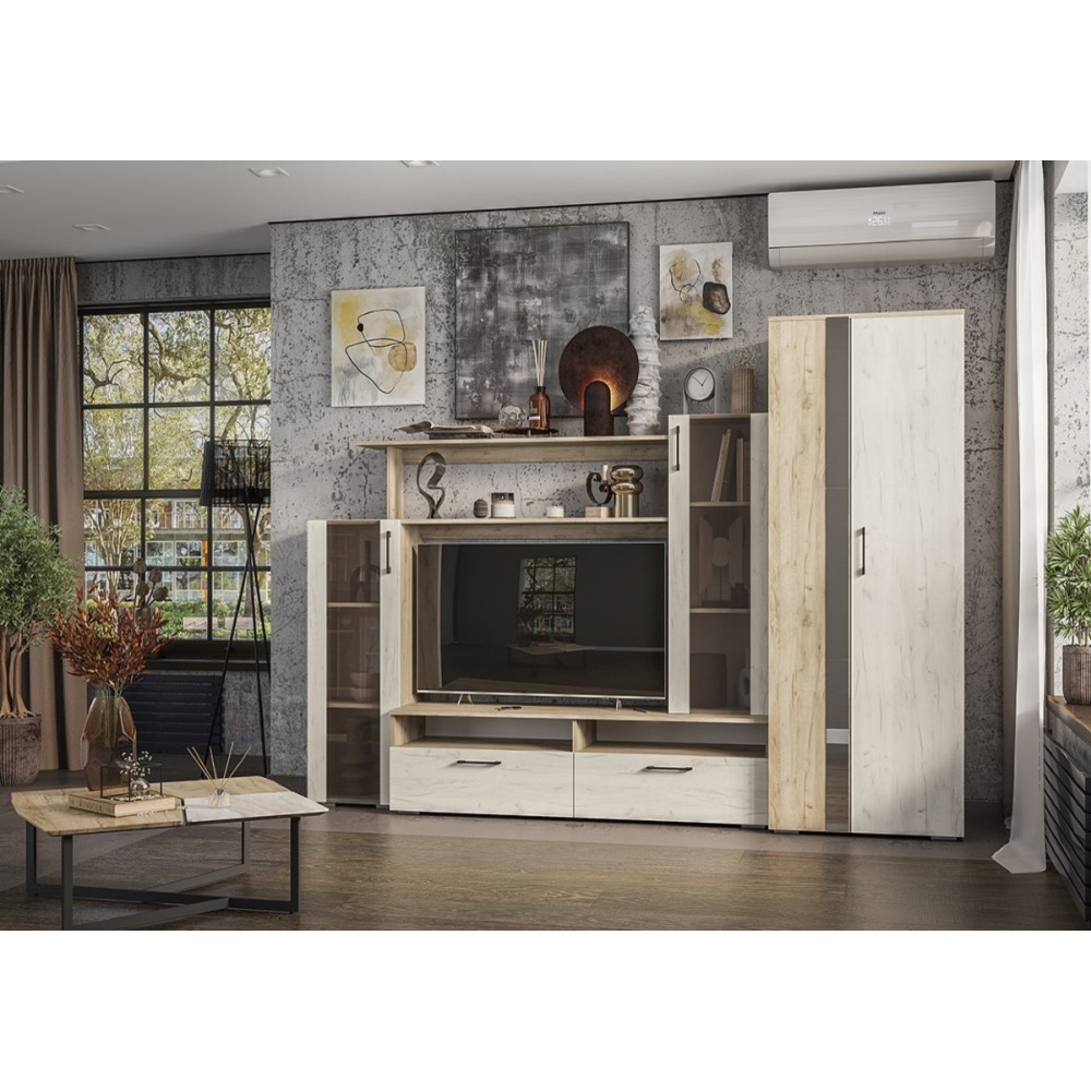 Ассиметричные формы, сочетание благородных природных оттенков и тонированное стекло придают гостиной Эмма особый шарм. Стенка будет выигрышно смотреться в любом современном интерьере.
