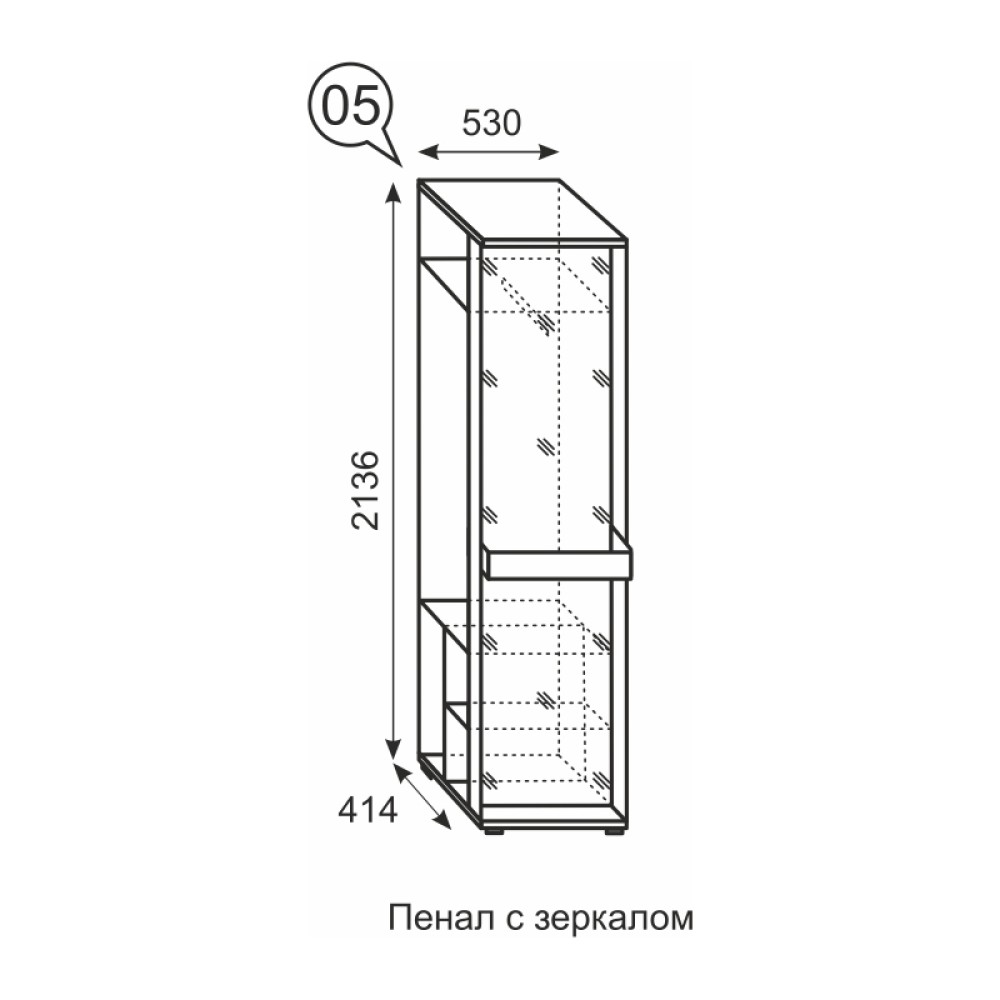 Noto 05 Пенал с зеркалом дуб табачный/черный