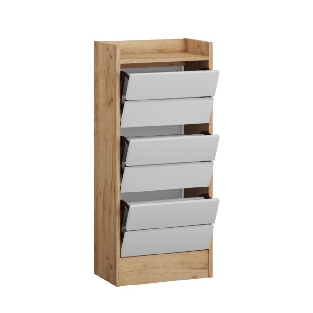 Обувница Ямайка - функциональный вариант хранения Вашей уличной и домашней обуви и гарантия порядка в прихожей. Модель имеет высоту в 112 см и 3 откидные ниши, в которых поместятся сразу несколько пар обуви. Сверху Вы можете расположить ключи, аксессуары и другую мелочевку, без которой не обойтись во входной зоне. Модуль прекрасно сочетается с зеркалом из данной коллекции.