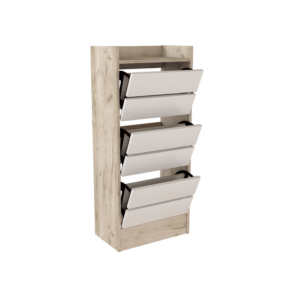 Обувница Ямайка - функциональный вариант хранения Вашей уличной и домашней обуви и гарантия порядка в прихожей. Модель имеет высоту в 112 см и 3 откидные ниши, в которых поместятся сразу несколько пар обуви. Сверху Вы можете расположить ключи, аксессуары и другую мелочевку, без которой не обойтись во входной зоне. Модуль прекрасно сочетается с зеркалом из данной коллекции.
