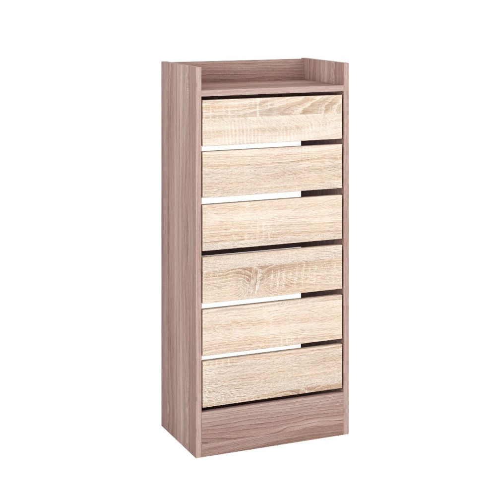 Обувница Ямайка - функциональный вариант хранения Вашей уличной и домашней обуви и гарантия порядка в прихожей. Модель имеет высоту в 112 см и 3 откидные ниши, в которых поместятся сразу несколько пар обуви. Сверху Вы можете расположить ключи, аксессуары и другую мелочевку, без которой не обойтись во входной зоне. Модуль прекрасно сочетается с зеркалом из данной коллекции.