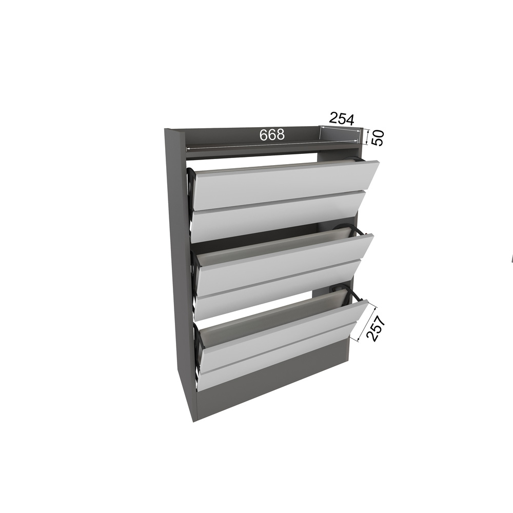 Обувница Ямайка - функциональный вариант хранения Вашей уличной и домашней обуви и гарантия порядка в прихожей. Модель имеет увеличенную ширину и 3 откидные ниши, в которых поместятся сразу несколько пар обуви. Сверху Вы можете расположить ключи, аксессуары и другую мелочевку, без которой не обойтись во входной зоне. Модуль прекрасно сочетается с зеркалом из данной коллекции.