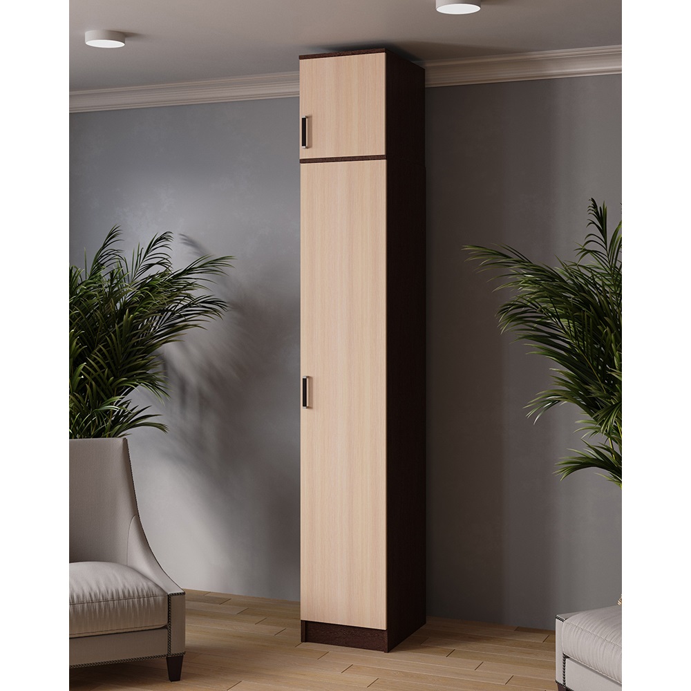 Благодаря гармоничным пропорциям и универсальному дизайну шкаф-пенал с антресолью Лагуна дополнит мебельный гарнитур в современной прихожей, гостиной или спальне. Четыре вместительные полки обеспечат место хранения для белья, аксессуаров, а с антресолью возможности хранения еще больше увеличиваются.
