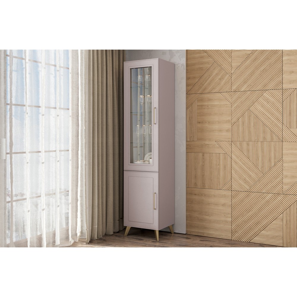 Пенал-витрина из коллекции Антеро дополнит гостиную и поможет организовать место хранения. Станет отличным место для вашего сервиза. Опоры крепятся при помощи саморезов (в комплект не входят).