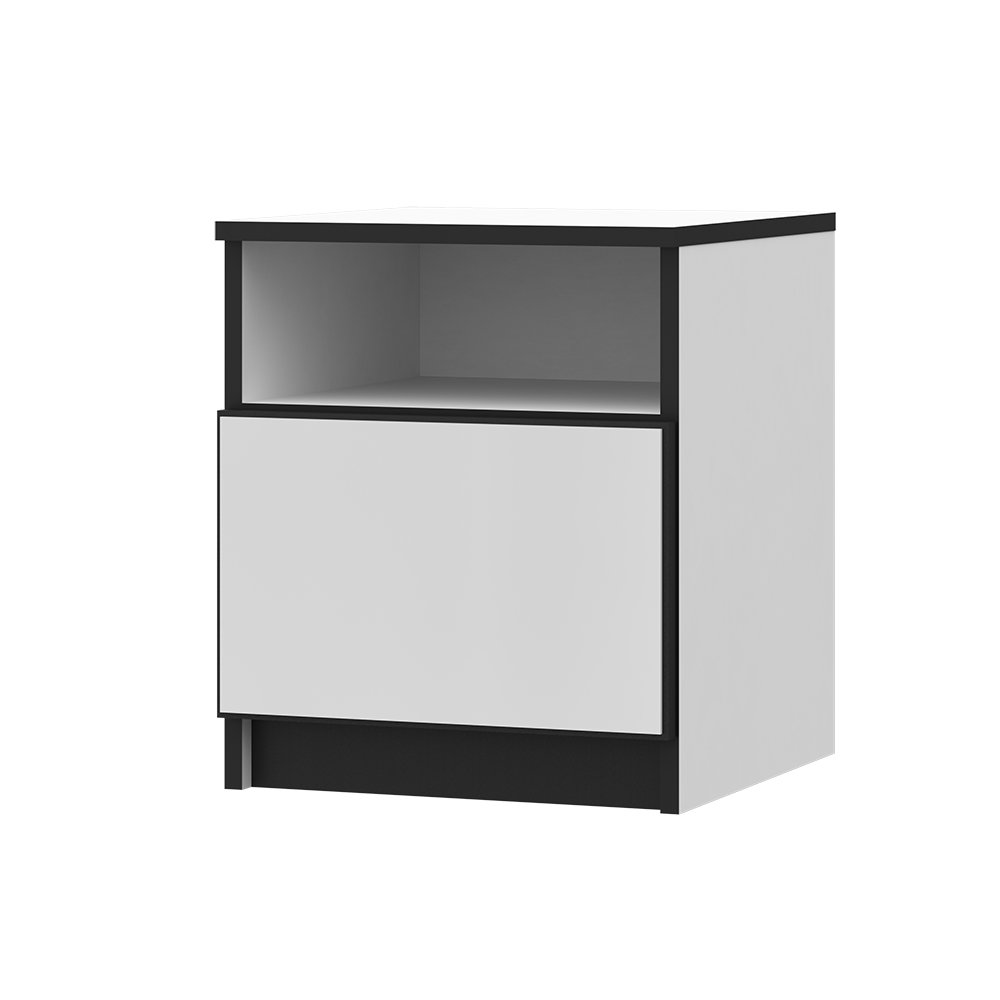 Прикроватная тумба Палермо в стиле минимализм с выдвижным ящиком на шариковых направляющих. Имеет стильное исполнение, ручки отсутствуют.